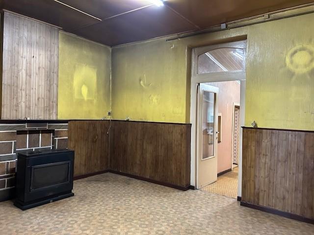 Chauffage poêles au mazout (cuve 1200l) et charbon, Châssis simple vitrage aluminium à l'avant, DV PVC à l'arrière.