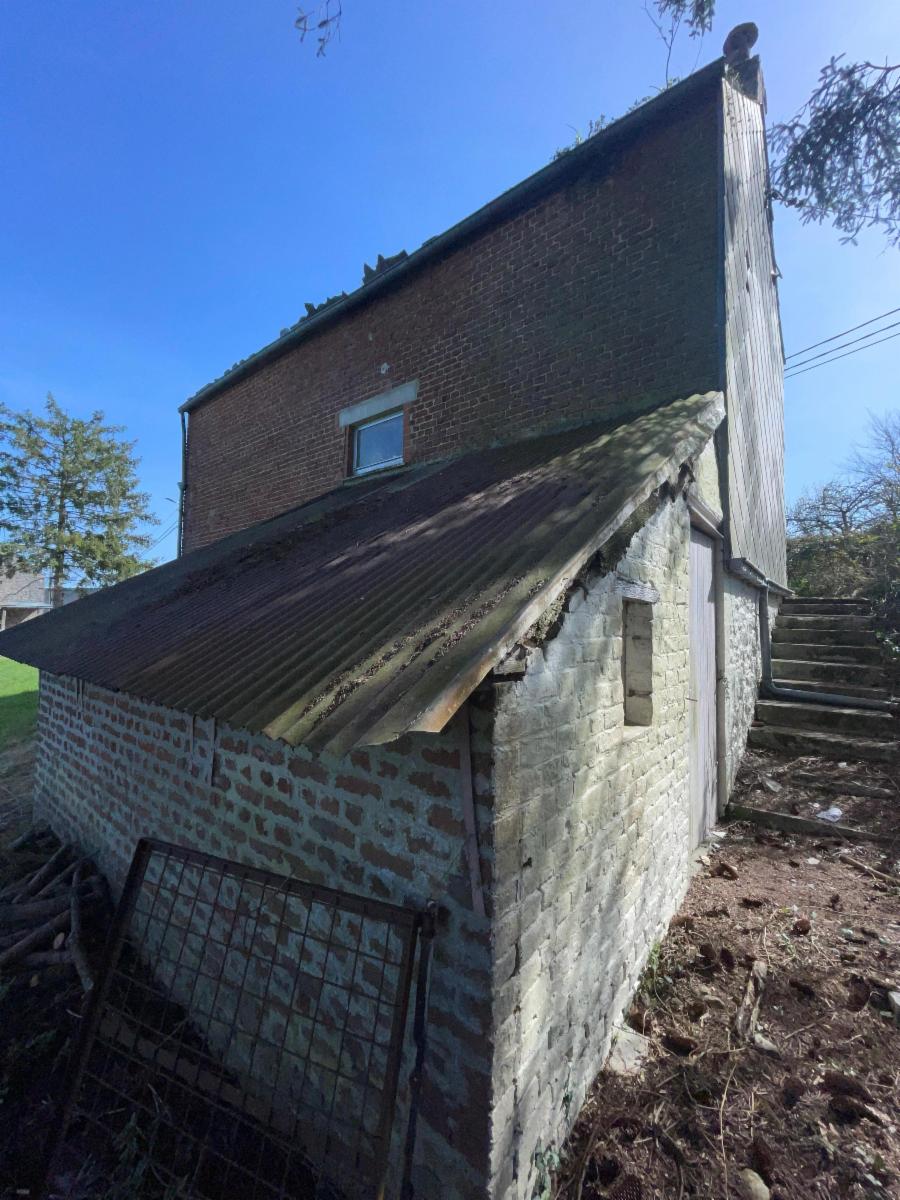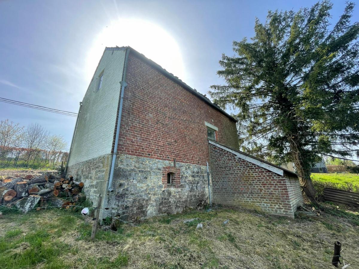 Maison à rénover en pleine nature, au calme, avec une vue magnifique à l’arrière. EXTENSION POSSIBLE (terrain à bâtir). Remise. Grand jardin. Entre Chimay et Couvin.