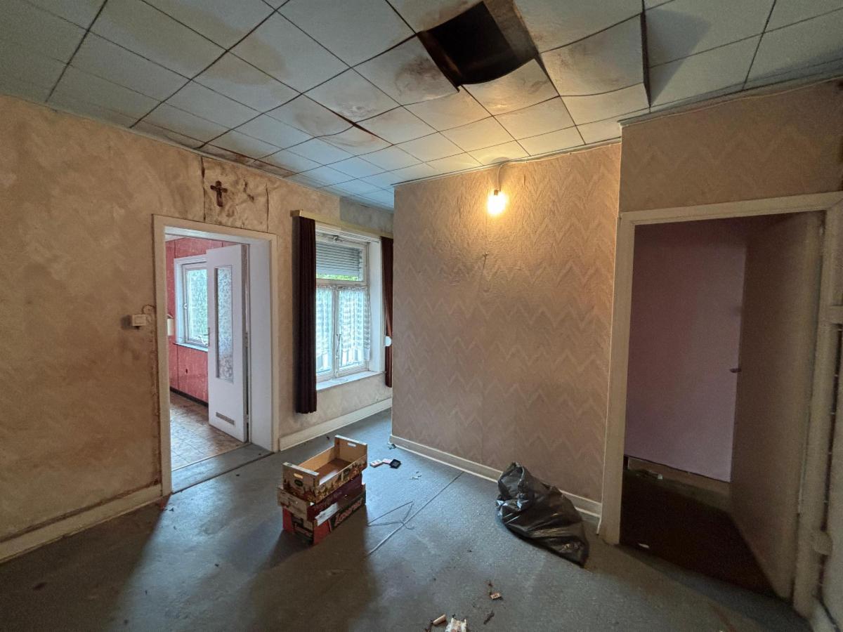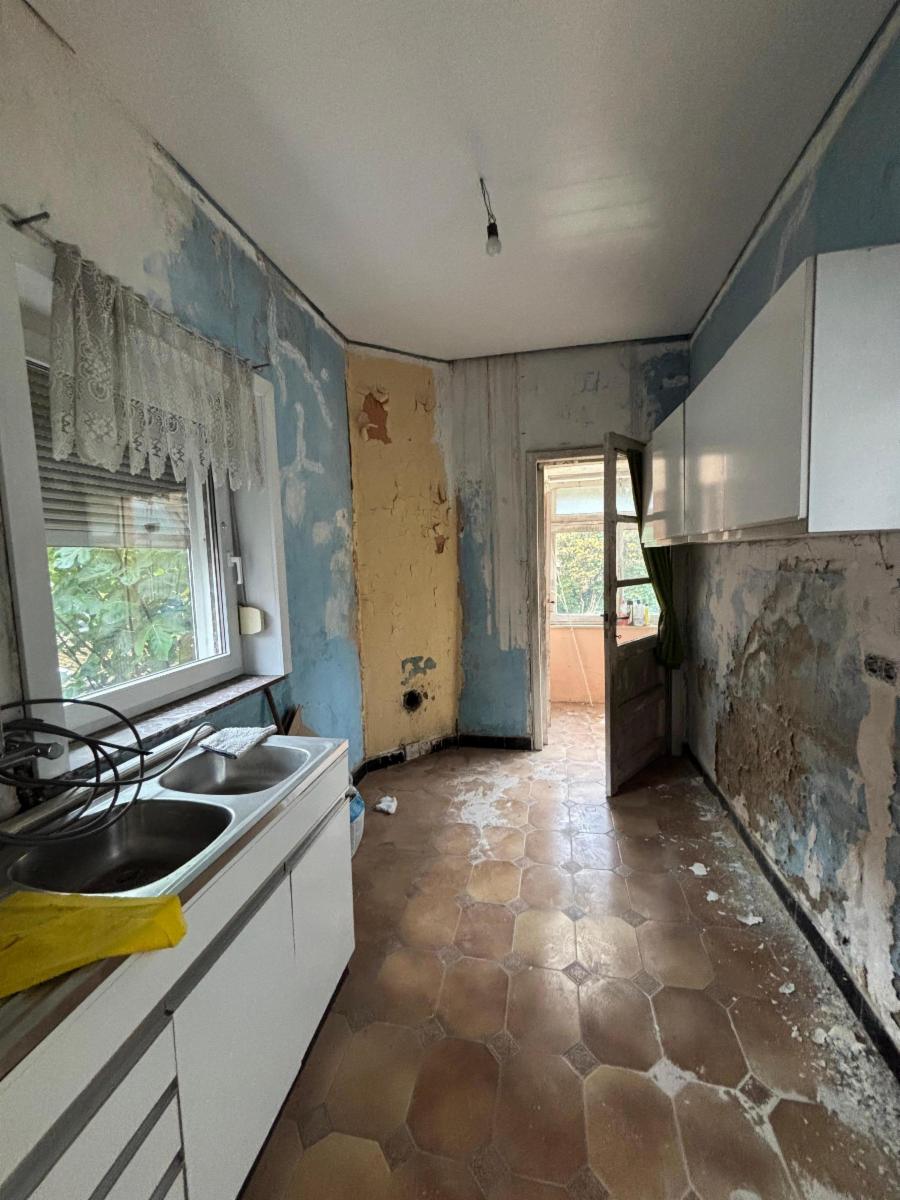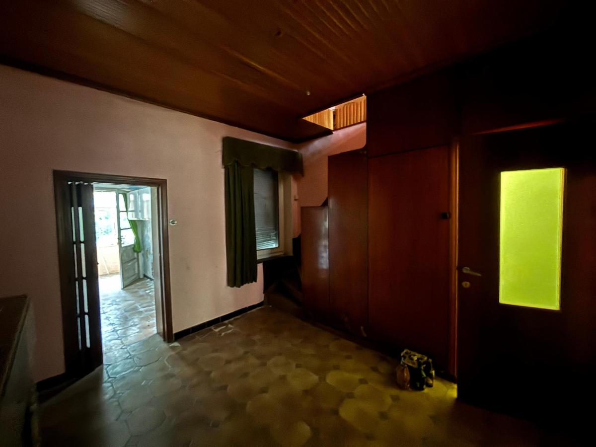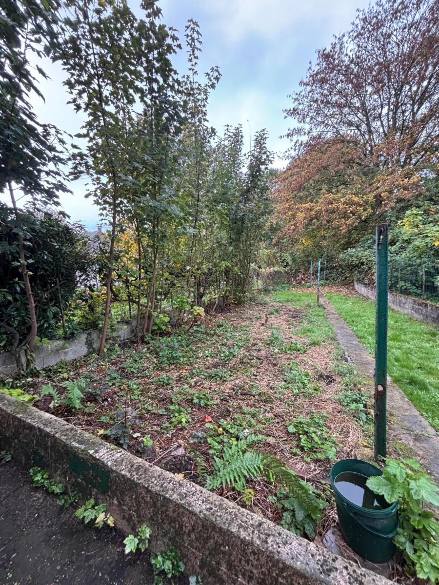 Maison à rénover avec passage latéral et jardin.