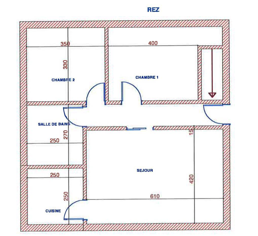 Au premier étage, une cuisine semi-équipée, un living, deux grandes chambres ainsi que la salle de bain.