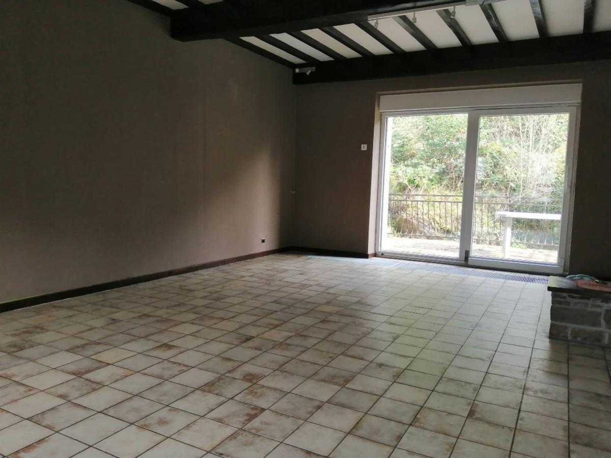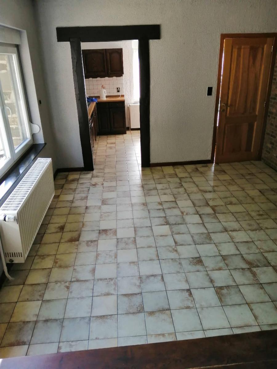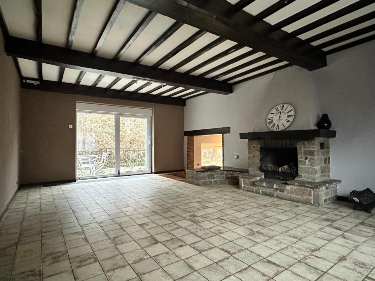 - Hall d’entrée, salle à manger, cuisine équipée, living, escalier et grand living (avec poutres), terrasse,