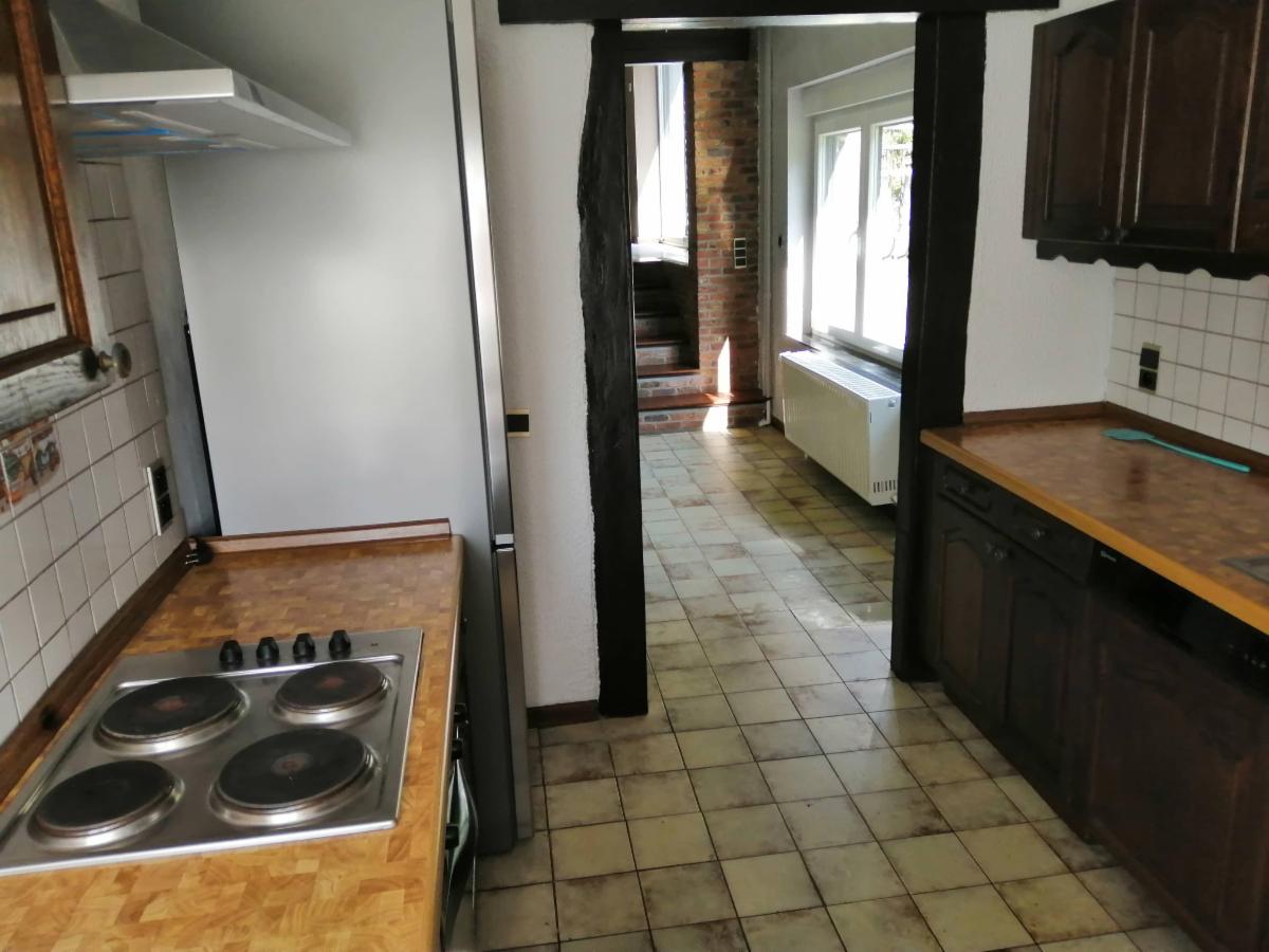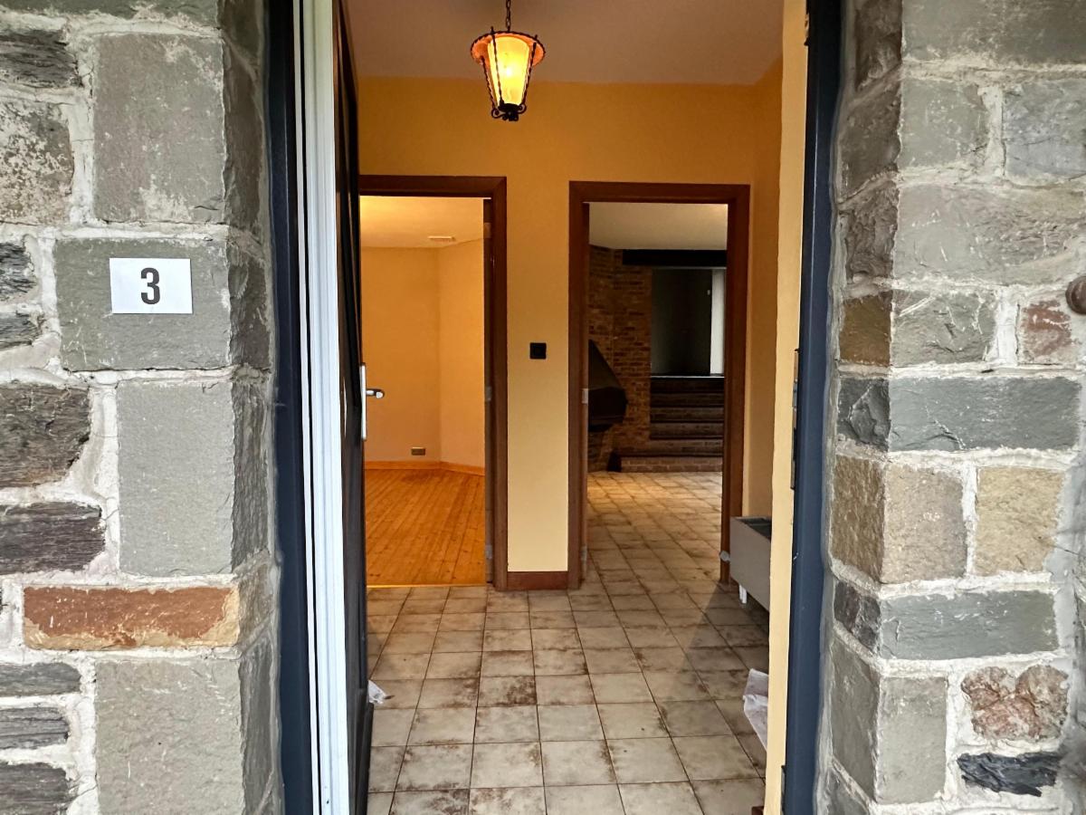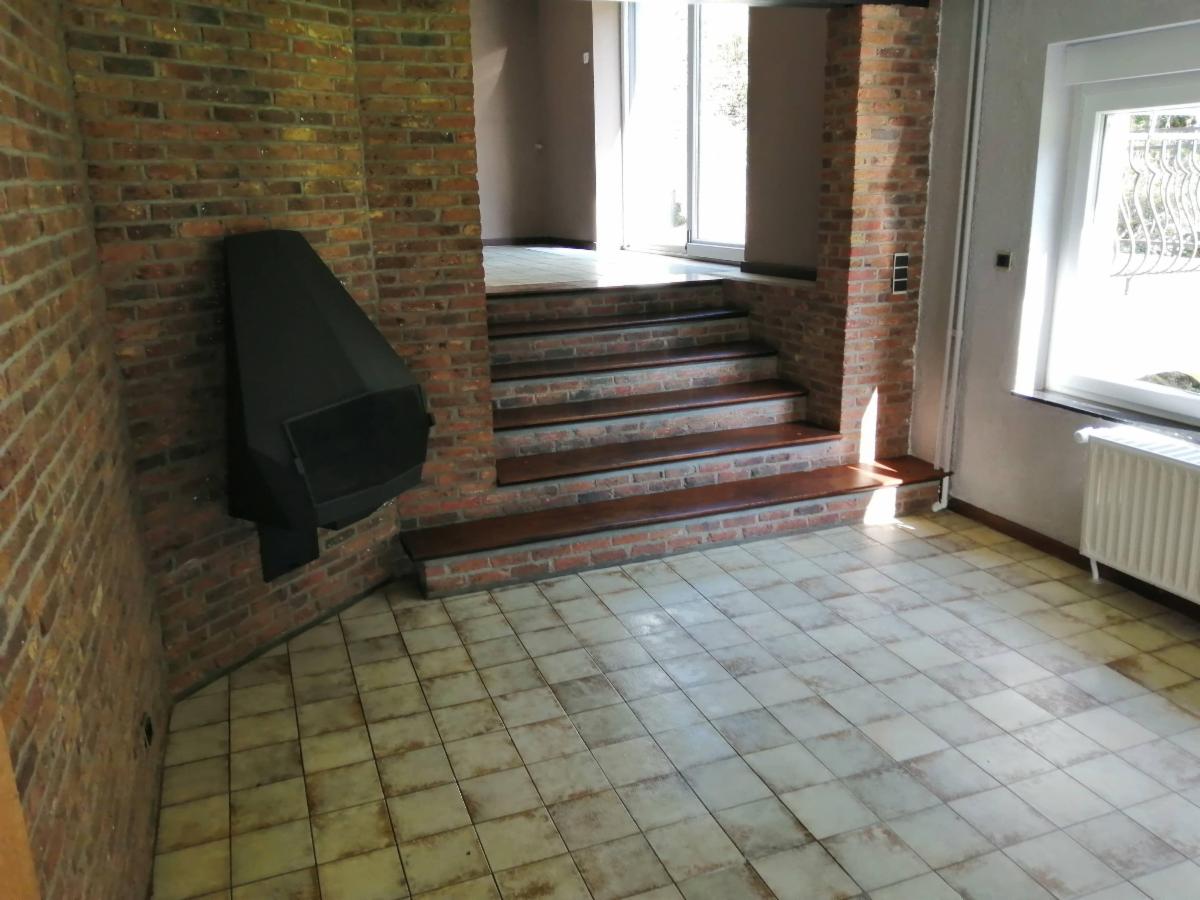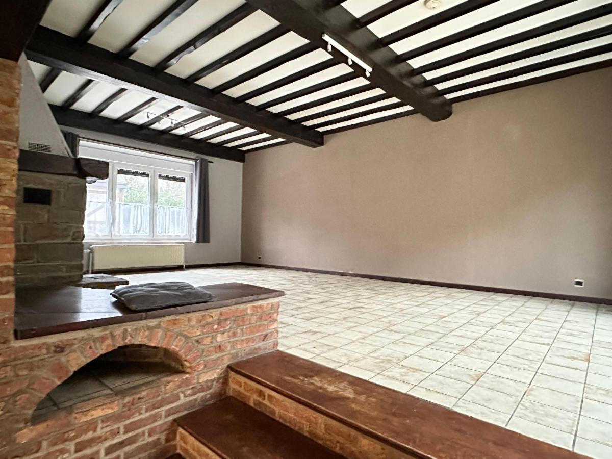 - Hall d’entrée, salle à manger, cuisine équipée, living, escalier et grand living (avec poutres), terrasse,