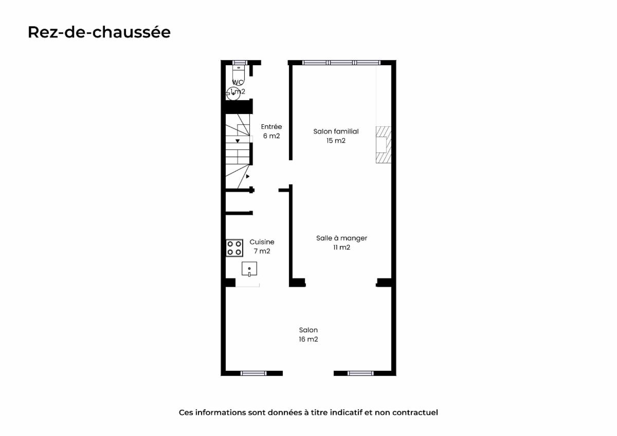 Maison sociale à rénover comprenant au rez-de-chaussée, un hall d'entrée, un WC, un salon ainsi qu'un salon familial, une salle à manger et une cuisine. L'étage se compose d'un bureau, d'une salle de bain et de 2 chambres.