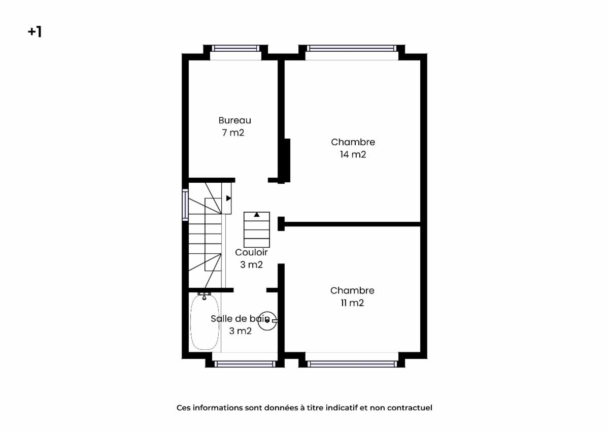 Maison sociale à rénover comprenant au rez-de-chaussée, un hall d'entrée, un WC, un salon, une salle à manger et une pièce pour une cuisine. L'étage se compose d'un bureau, d'une salle de bain et de 2 chambres.