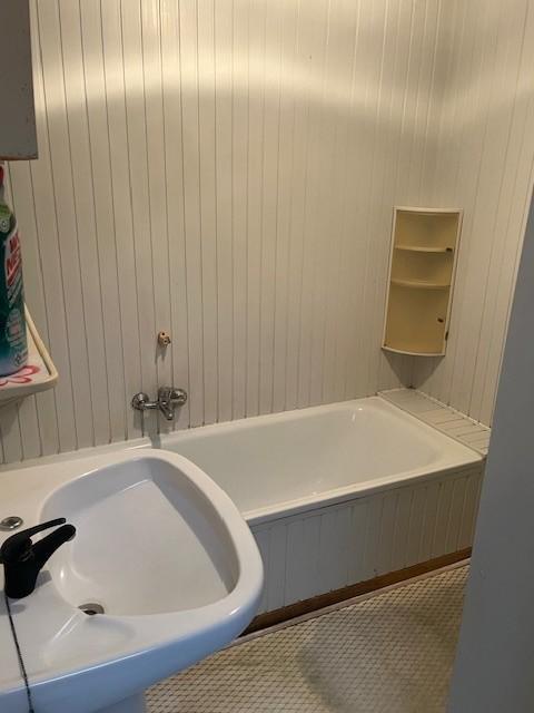 À l’extérieur, une cour couverte permet de profiter d’un petit espace extérieur à l’abri.