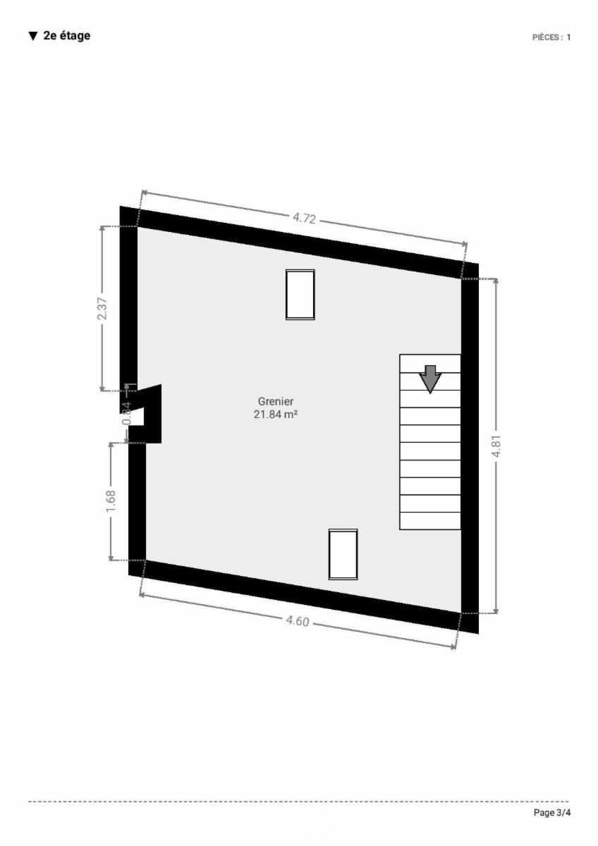 Grenier : un espace de ±21 m² offrant de nombreuses possibilités d’aménagement.