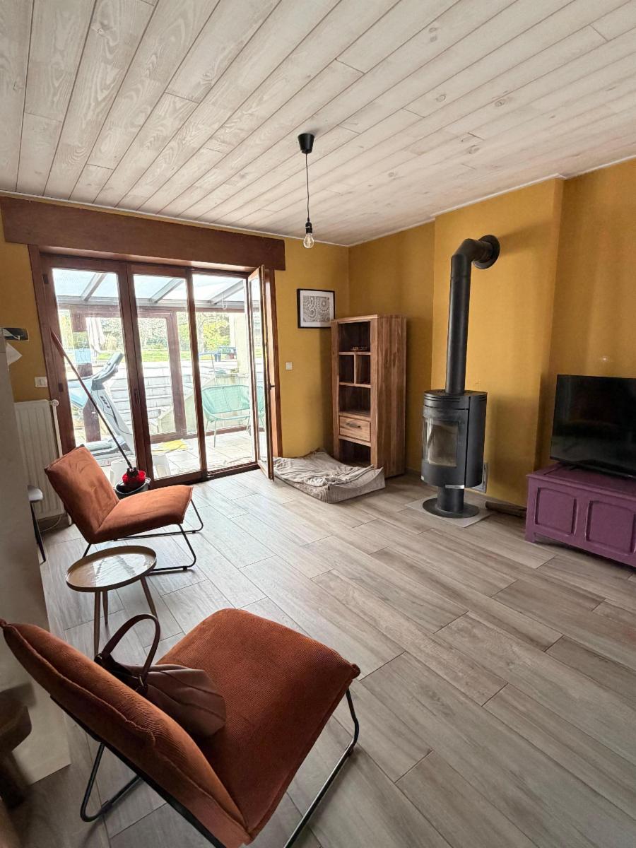 Rez-de-chaussée : salon, salle à manger, cuisine équipée, salle de bain, WC, buanderie, véranda.