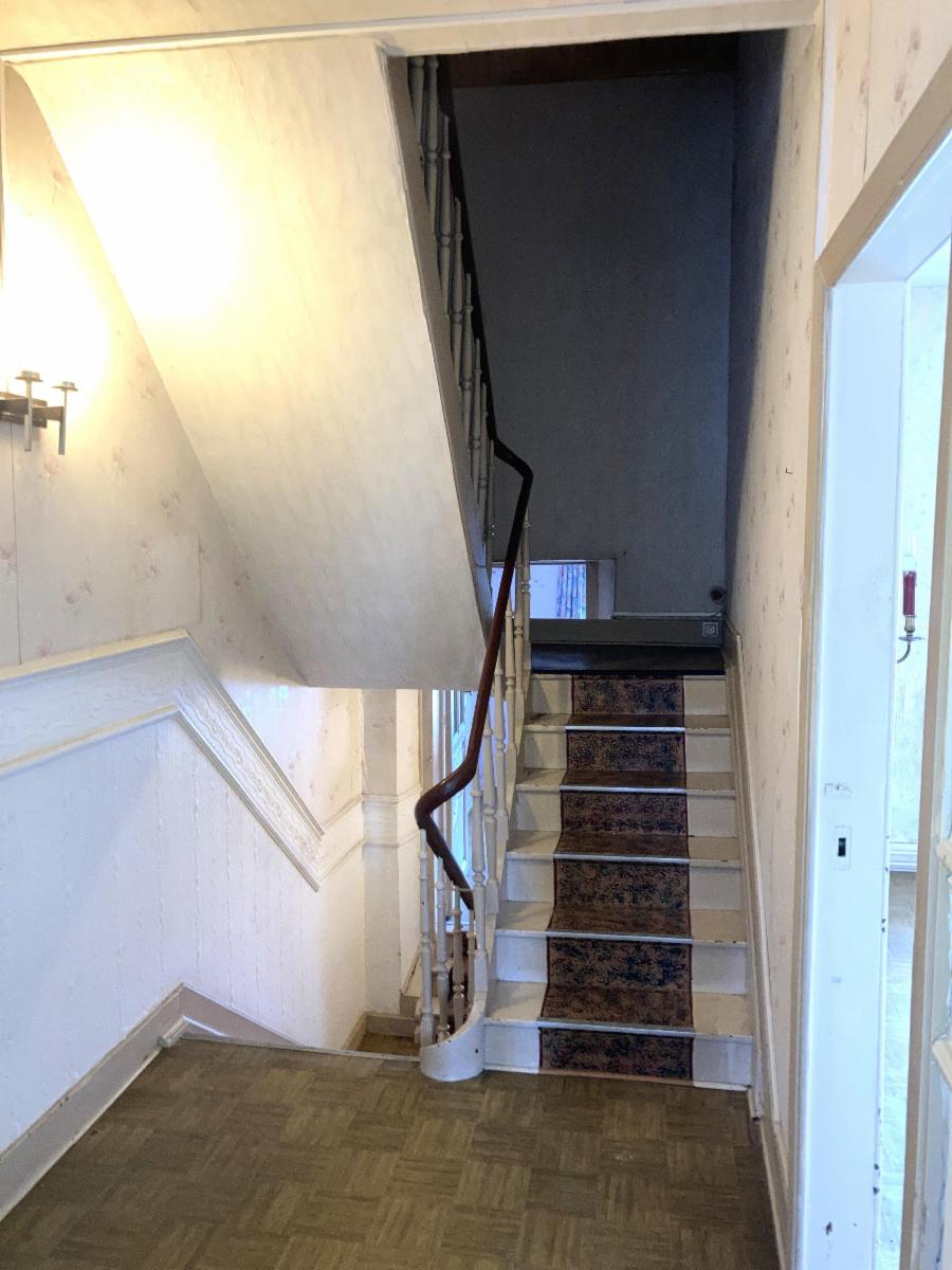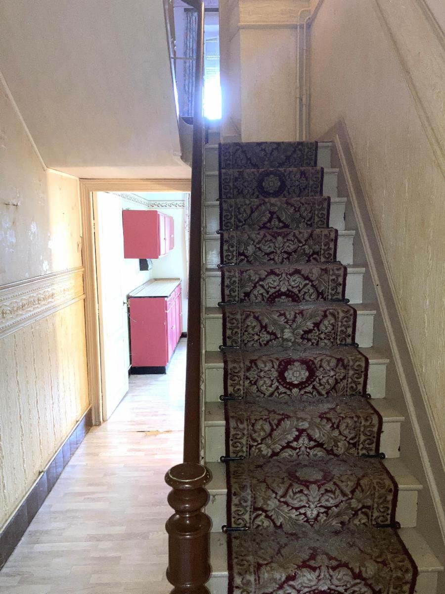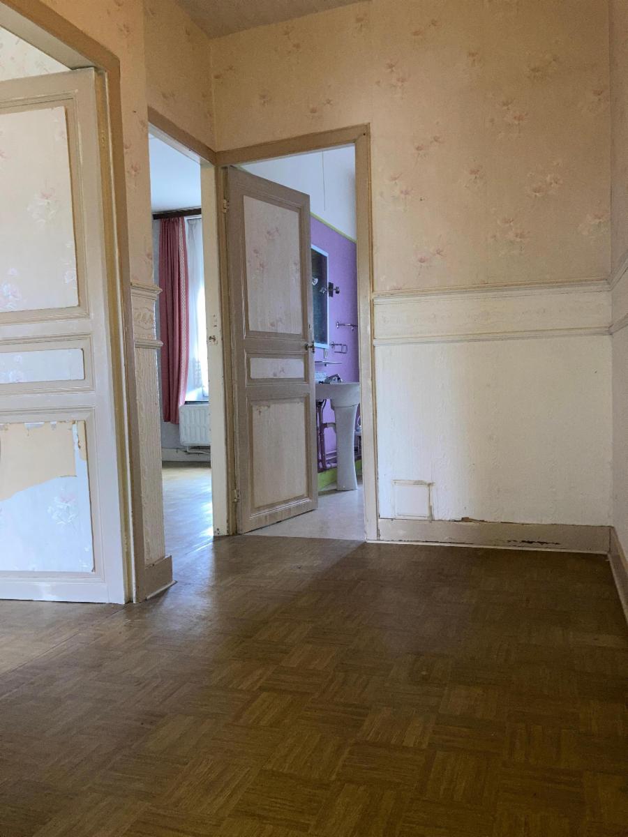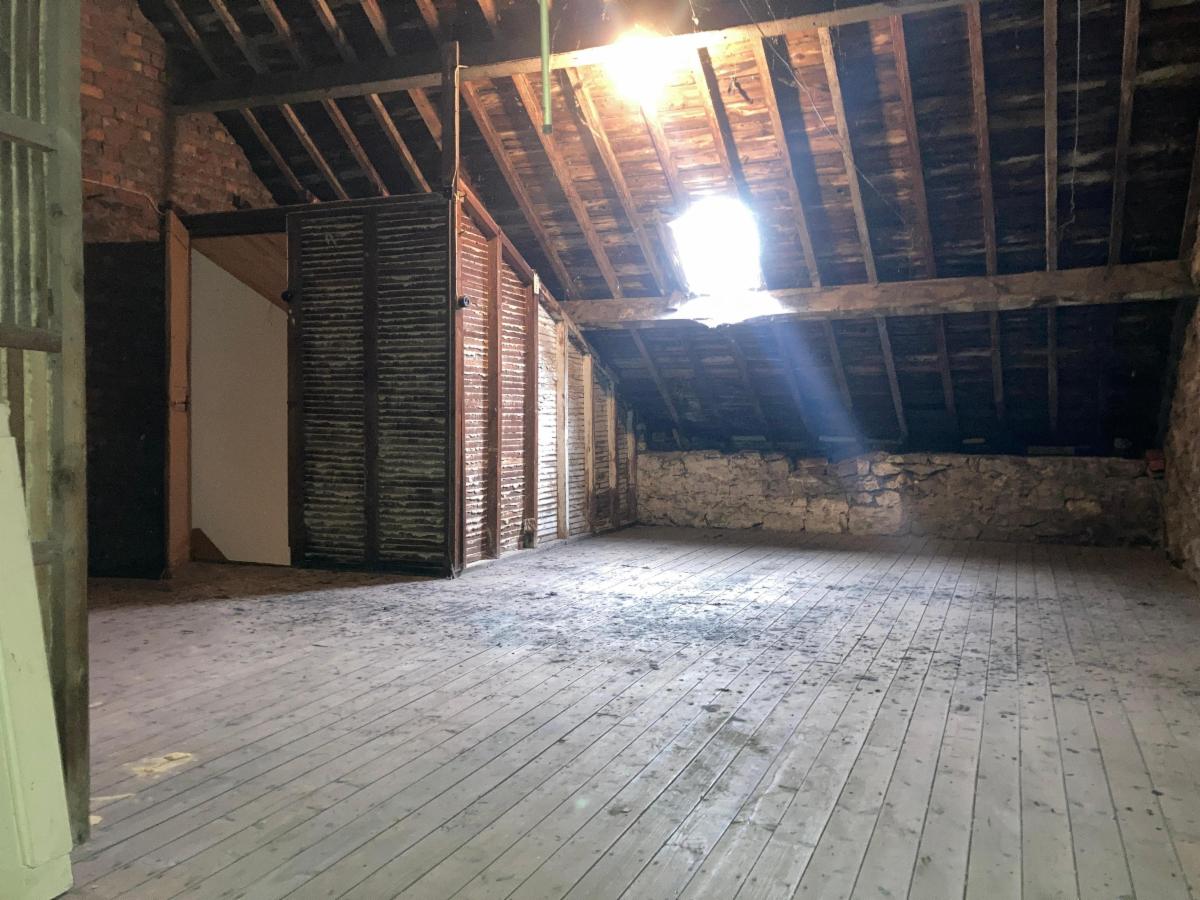 Rez-de-chaussée : grand hall de jour, salon / salle à manger, cuisine à aménager, arrière-cuisine, WC.