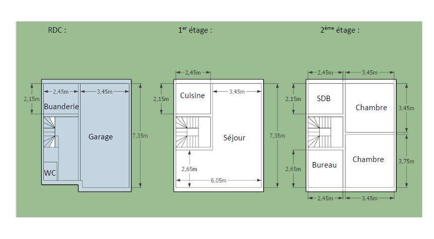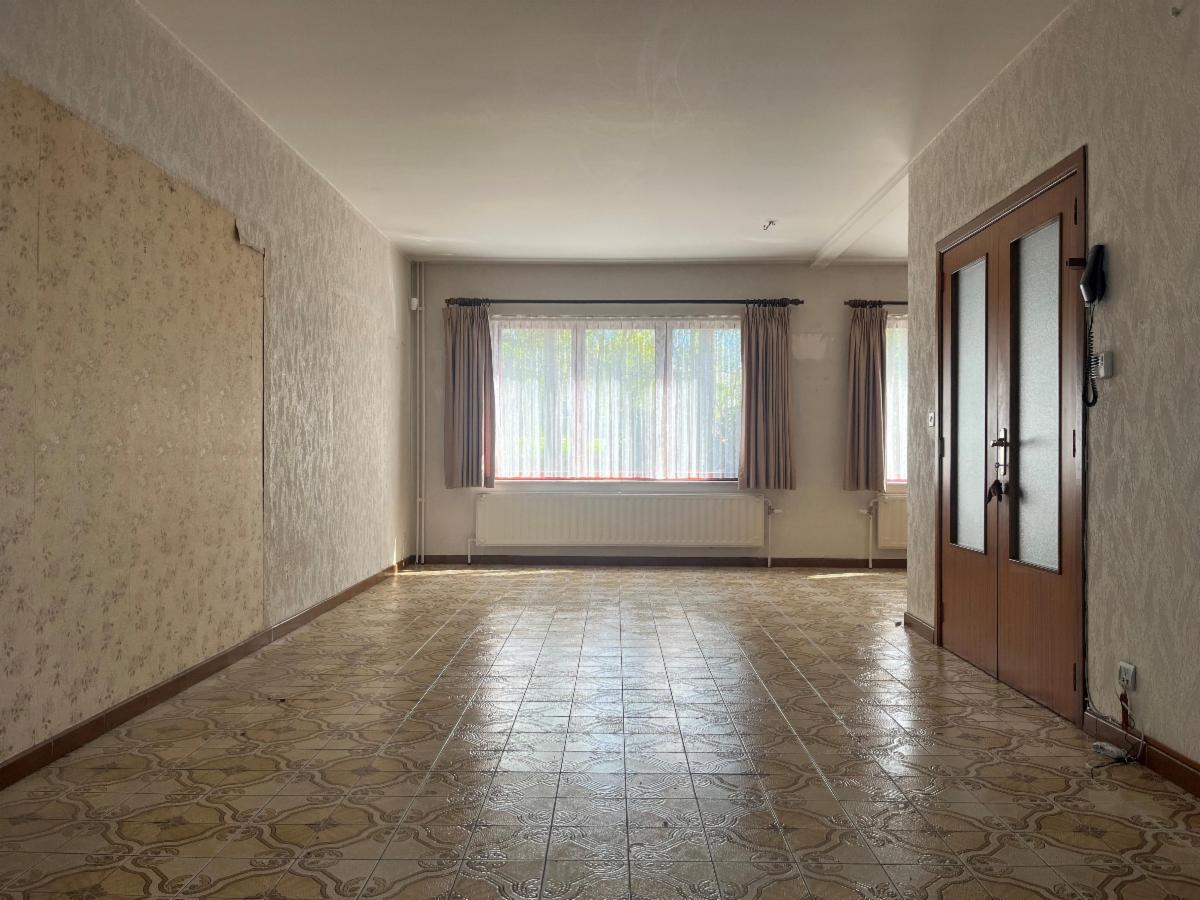 1er étage : un séjour (+/- 32,2m²) et une cuisine (+/- 5,3m²).
