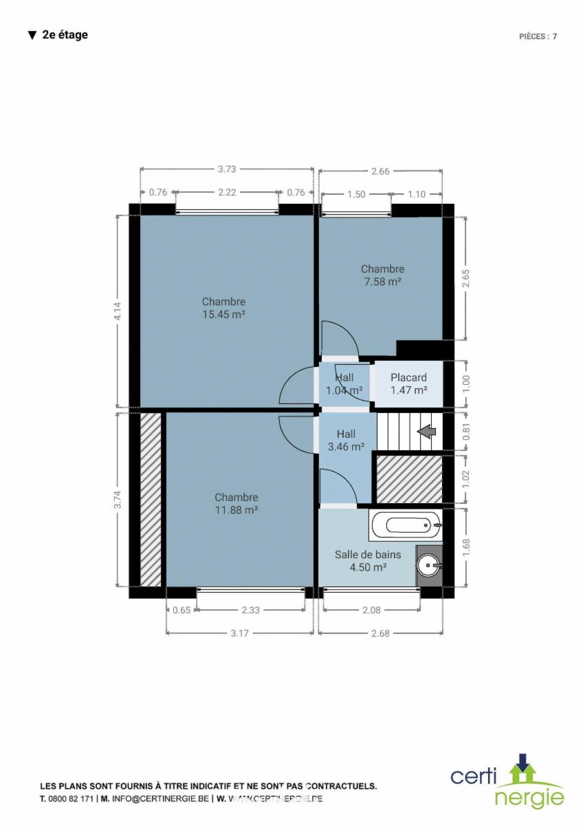 Le deuxième étage du bien offre 3 chambres ainsi qu'une salle de bain.