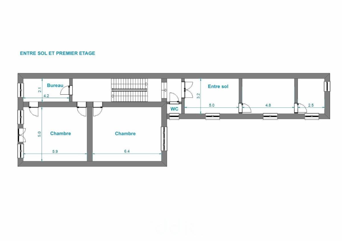 • A l’entre sol : un wc et trois pièces en enfilade d’environ 16 m², 15 m² et 8 m².