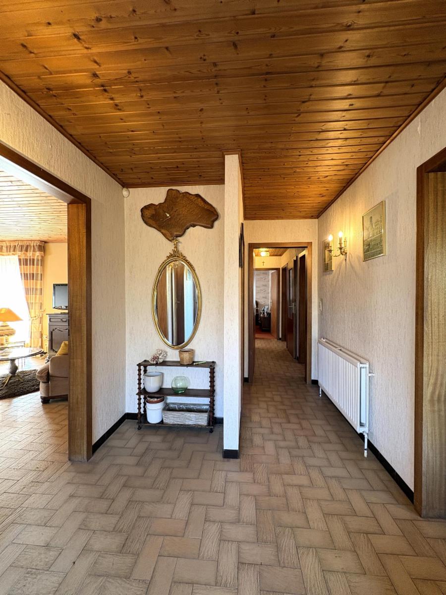 Châssis en bois avec double vitrage, chauffage au mazout (chaudière « Chappee »), toiture en ardoises (à isoler), sols carrelés/moquette dans les différentes pièces, compteur électrique simple horaire, volets, système d’alarme, banne solaire, …