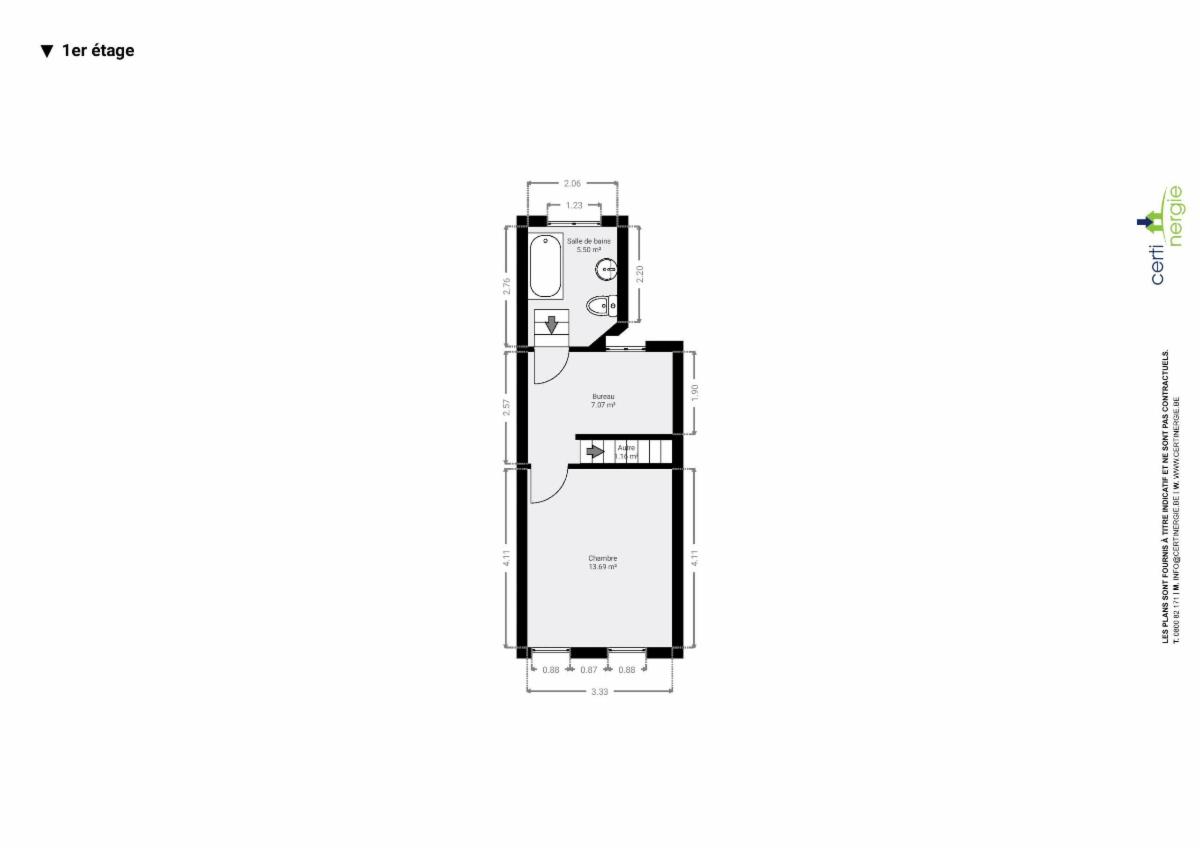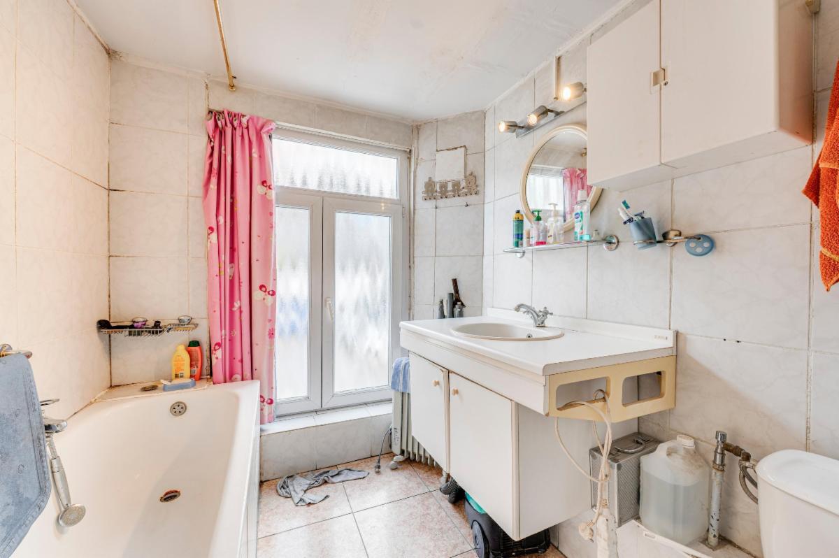 Maison de ville 2 façades à rénover, proche des écoles, commerces et facilités (bus, train). Elle se compose comme suit: un salon / salle à manger de 20 m², une cuisine et un accès vers le garage / buanderie. Au 1er étage, une chambre de 14m², un bureau de 7m² et une salle de bains avec wc. PEB B, châssis PVC double vitrage.