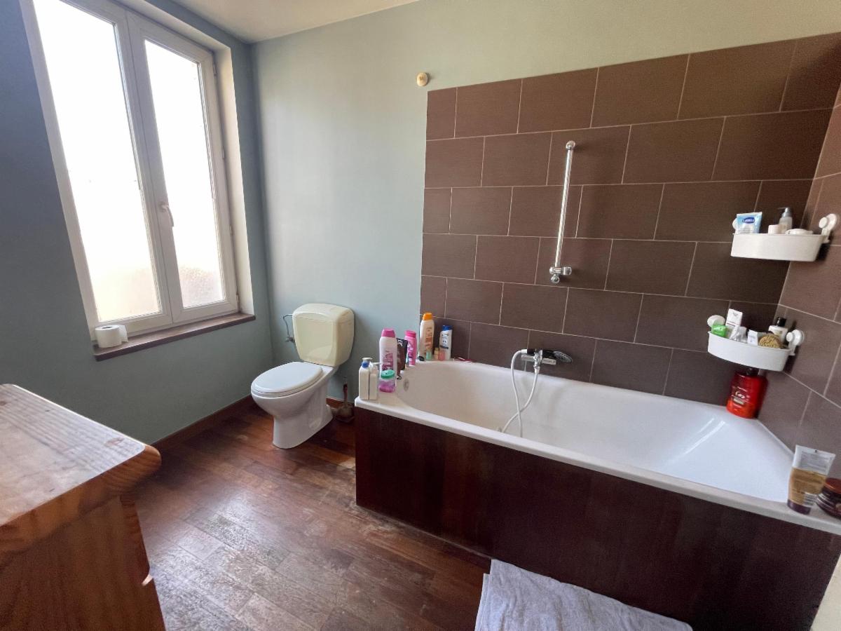 1er étage : un palier distribuant l’accès vers l’escalier du 2ème étage et du rez-de-chaussée, et l’accès à la chambre et la salle de bains avec toilette.