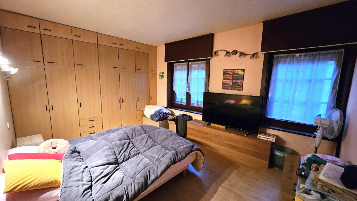 Au 1e étage : une grande chambre sur l’avant et une chambre sur l’arrière, avec accès vers grenier.