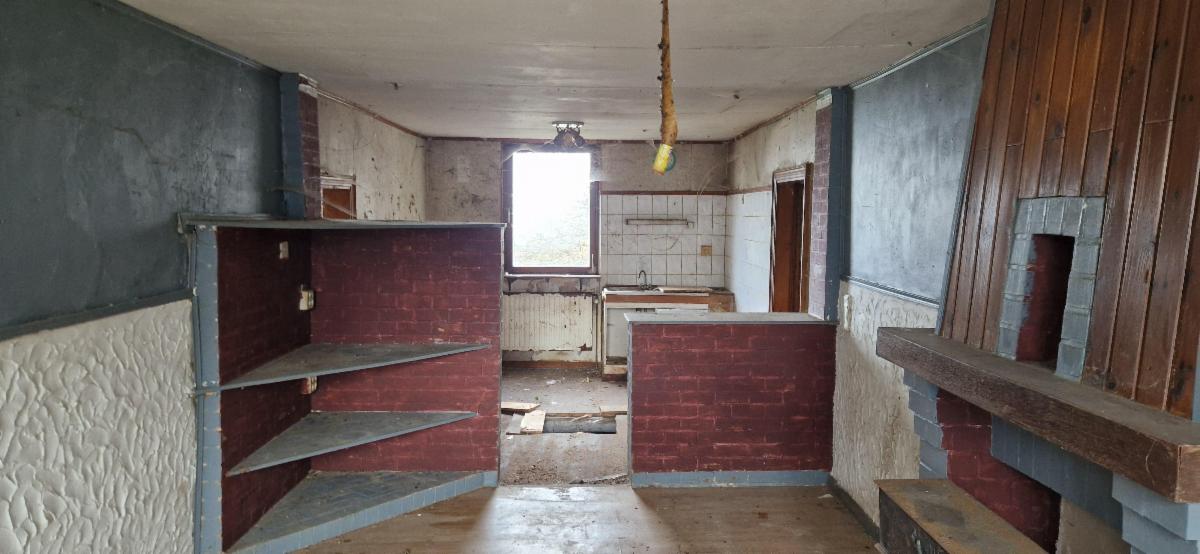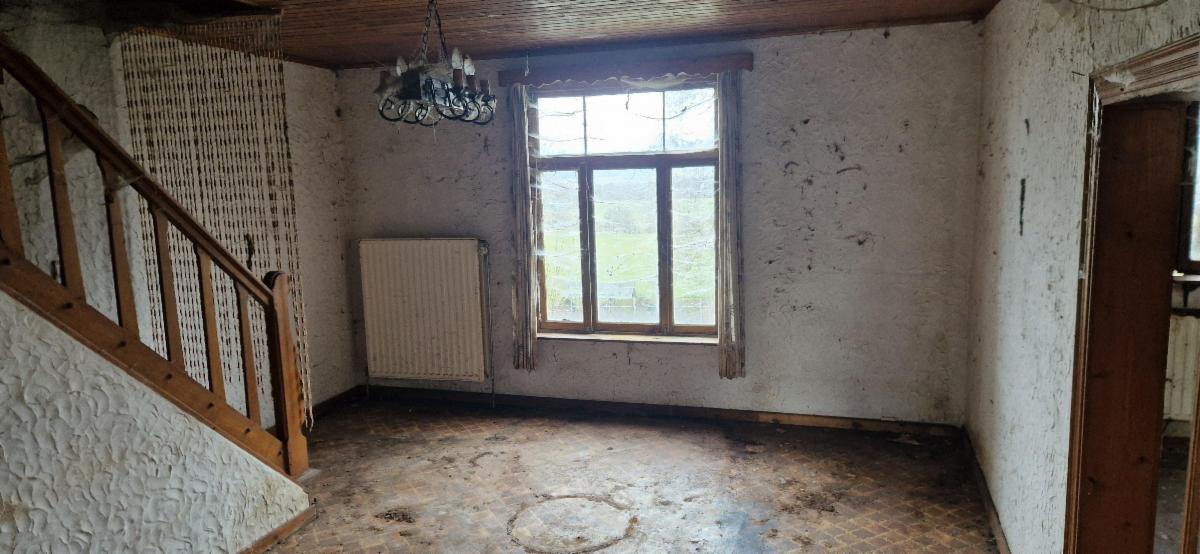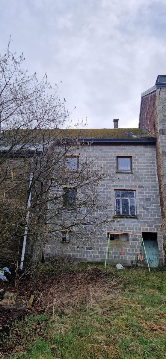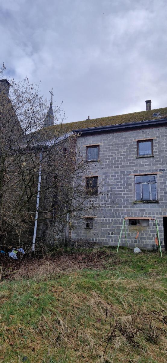 Dans le village de Soy, commune d'Erezée charmante maison d'habitation 3 façades à rénover avec garage et petit jardin