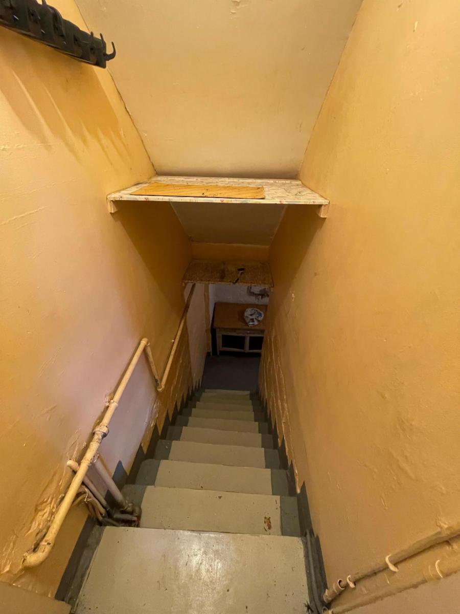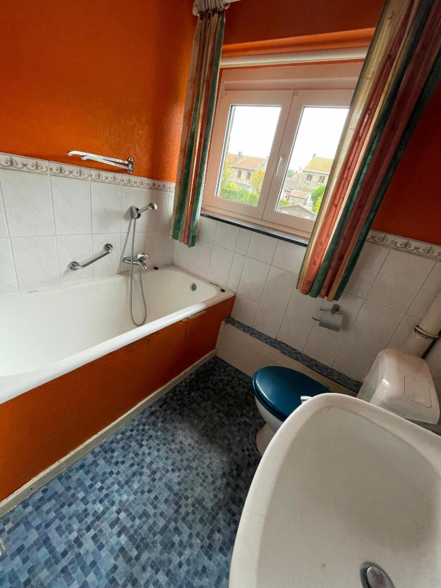 *Premier étage : palier, chambre avant, chambre arrière et salle de bains à rénover complètement avec wc, baignoire et lavabo.