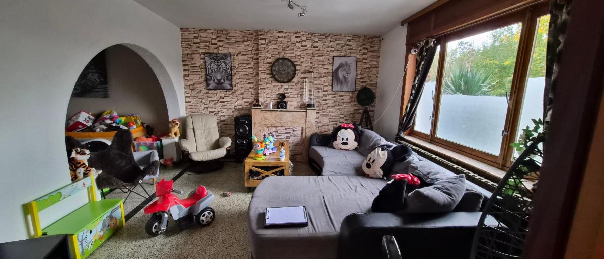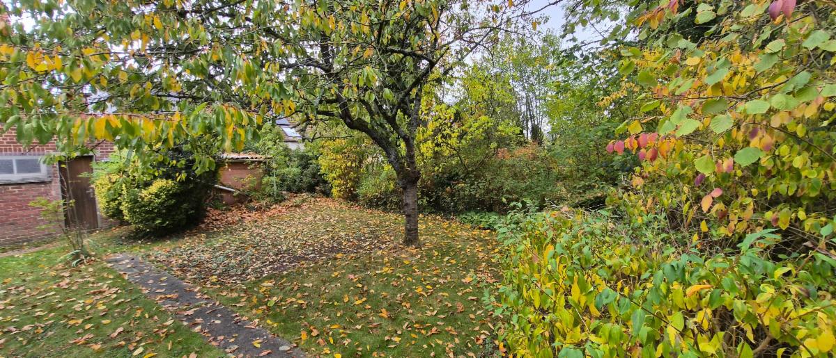 Maison d'habitation 4 façades de 1960 avec garage, parking à l'avant, jardin, cour et passage latéral carrossable sur et avec 06 a 04 ca.