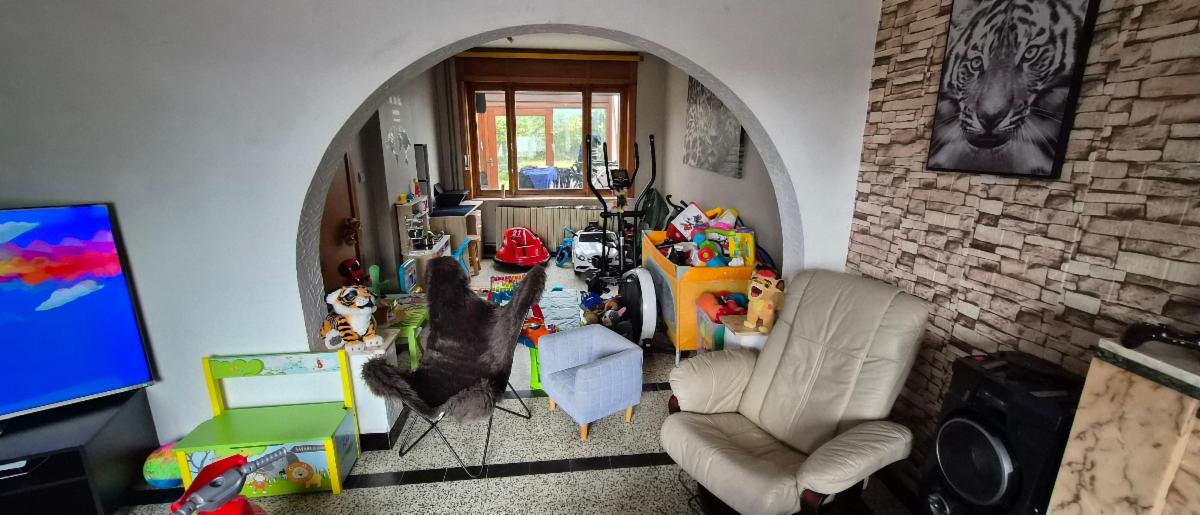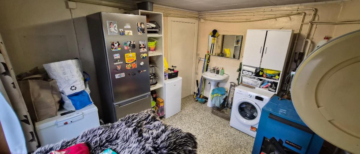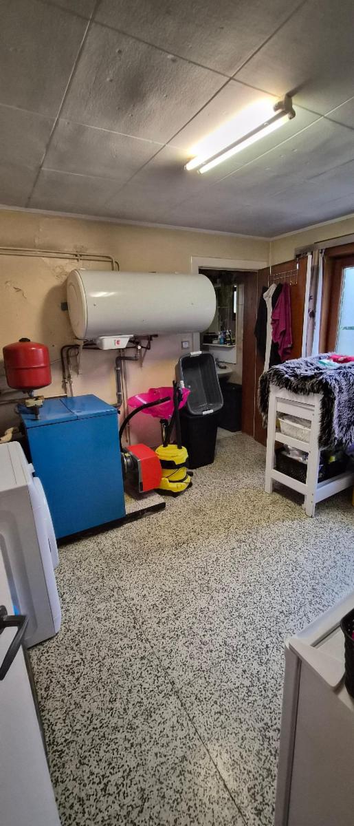 Rez: hall, salon, salle à manger, cuisine, bureau, wc, salle de bains, buanderie, remise et véranda. Cave.