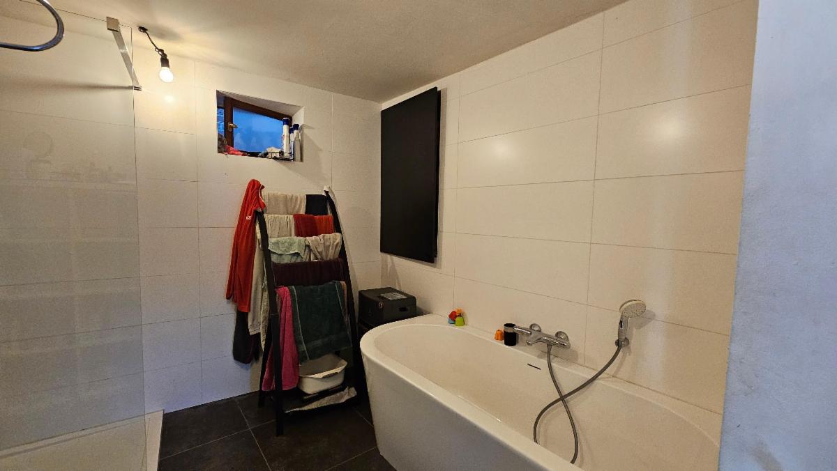 Au rez-de-chaussée : salon, buanderie, salle de bain (vasque, douche et bain), cuisine équipée très lumineuse (lave vaisselle, micro-onde et frigo (le piano ne fait pas partie de la vente))