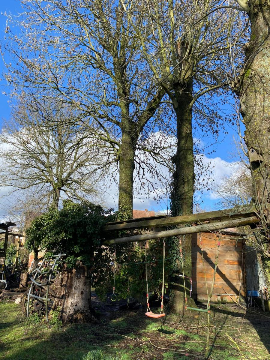 A l'extérieur : jardin clôturé et bien exposé en longueur à l'arrière de la maison avec barbecue en briques, deux abris de jardin et une cour intérieure