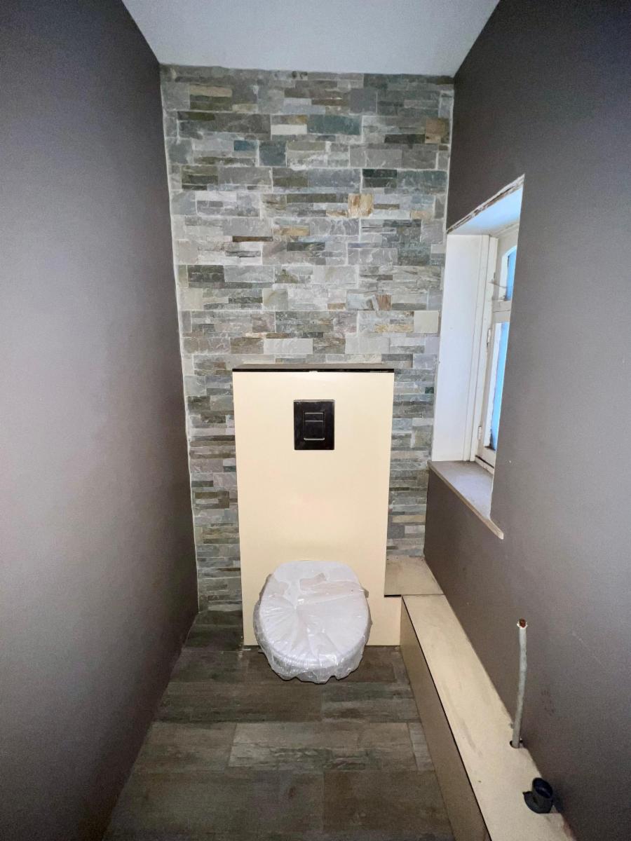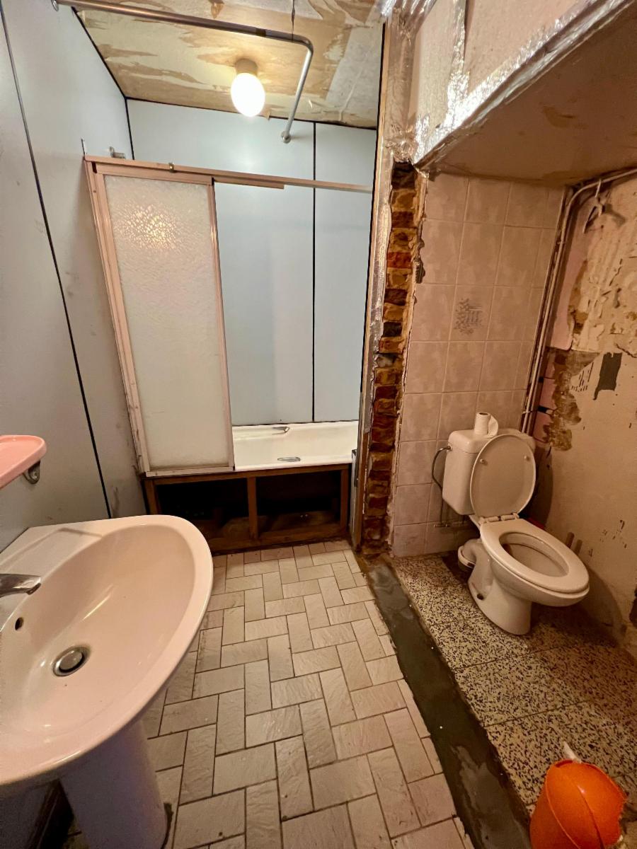 *rez : 3 pièces pouvant servir de séjour (salon - salle à manger- voir même chambre au rez), wc, cuisine, salle de bain (avec évier, wc et bain)