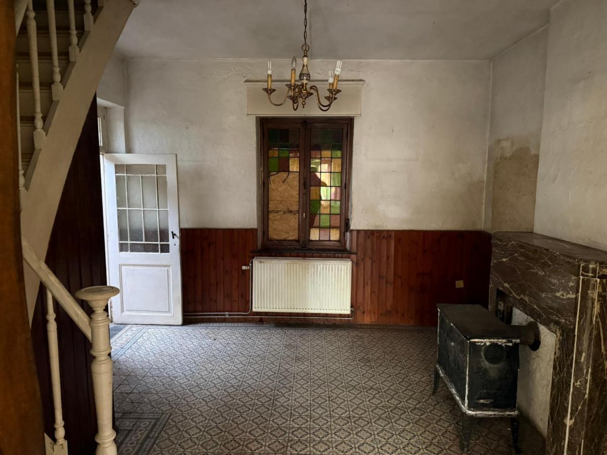 Maison d’habitation unifamiliale à rénover assise sur un terrain de 1.115 m² (zone d'habitat à caractère rural - possibilité de construction sous-réserve bien entendu des autorisations à obtenir). Prix souhaité : 220.000 €. Ce bien se compose comme suit : au sous-sol : présence d’une petite cave avec compteurs et citerne à mazout; au rez-de-chaussée : salon, salle à manger, SDB (une baignoire et un lavabo), un hall de dégagement, wc indépendant, cuisine non équipée; garage avec porte sectionnelle, deux petites cours extérieures dont une couverte; au 1er étage : deux chambres. Grenier mansardé accessible via un escalier. Chauffage central au mazout. Châssis en bois SV avec volets. PEB G numéro 20250312020640 établi le 12.03.2025. Installation électrique non conforme. Superficie totale : 1.115 m². Surface habitable selon PEB : 112 m. RC : 441 €. Possibilité de développement. Proche de toutes les commodités.