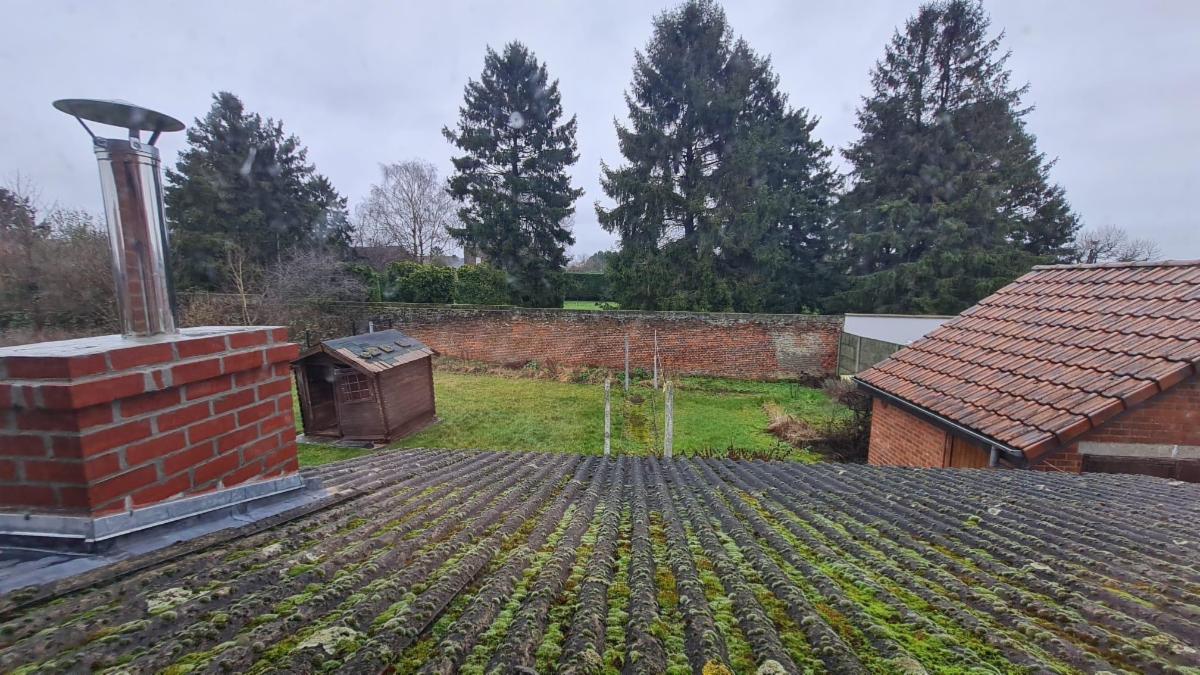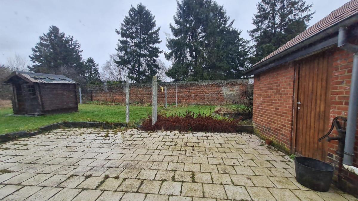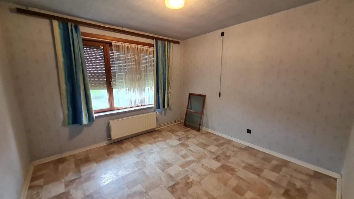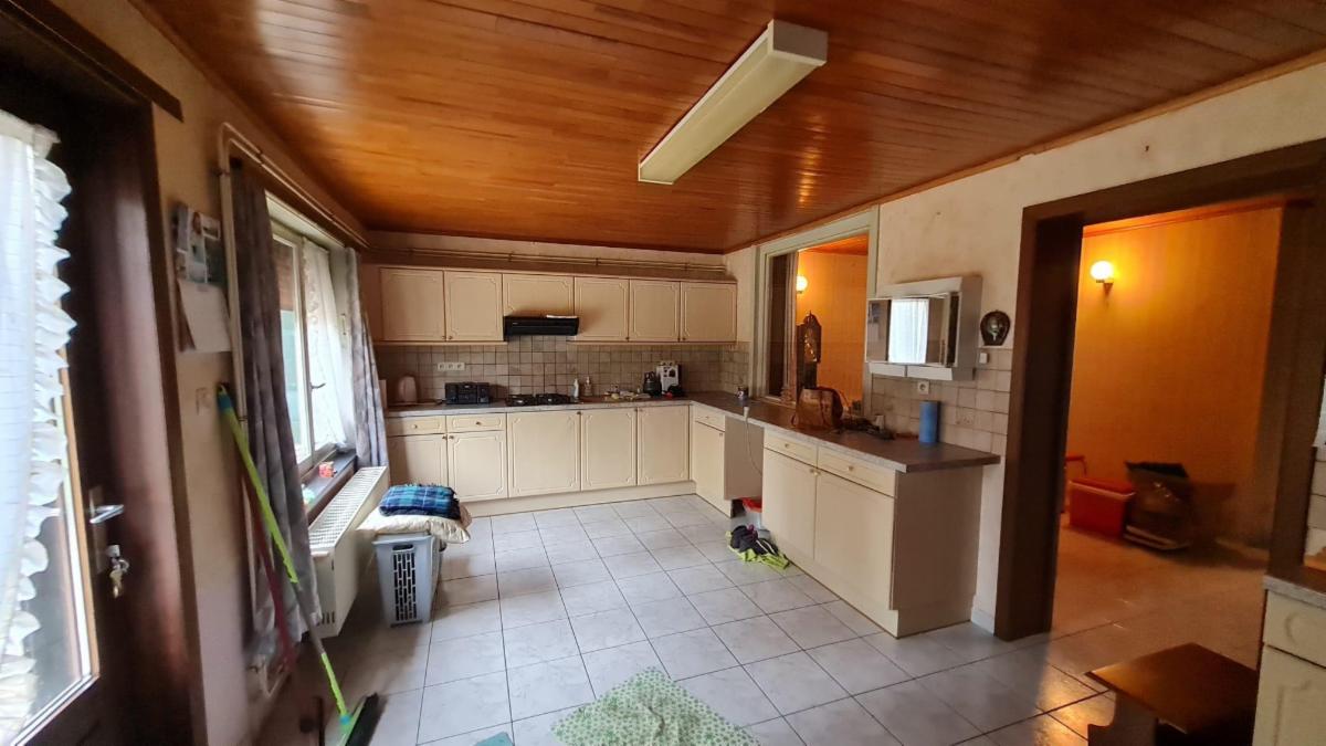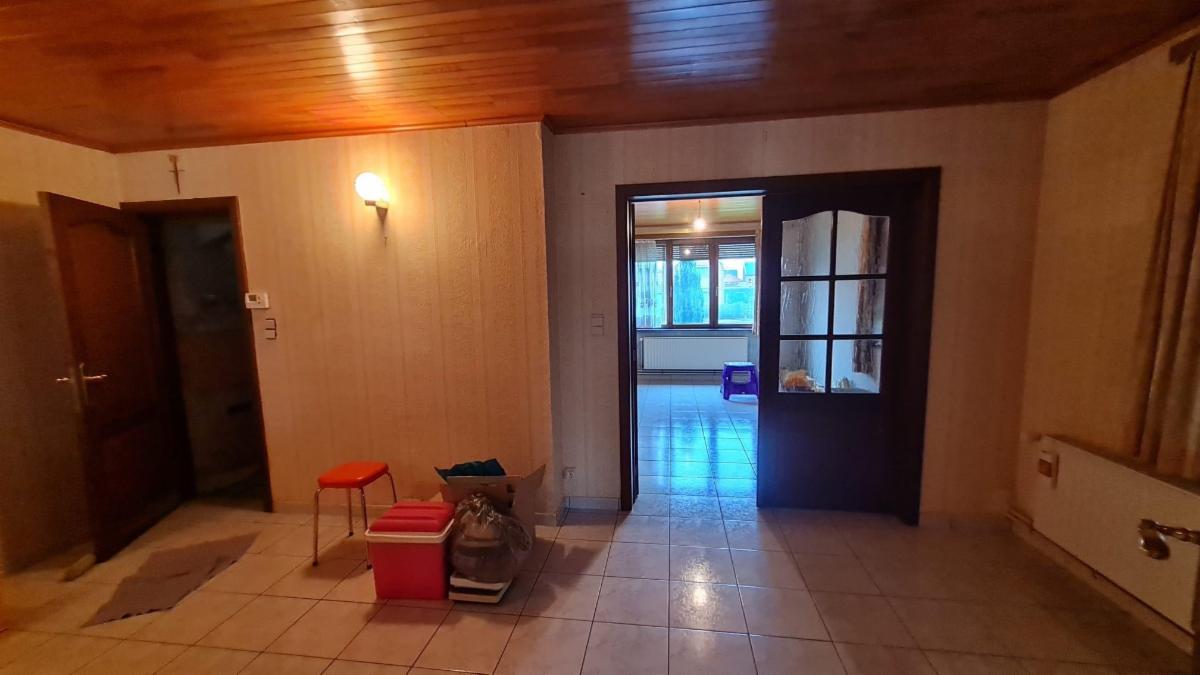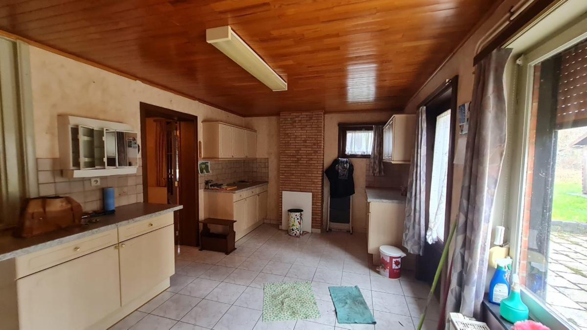 Maison d'habitation à vendre. Elle comprend, au sous-sol : deux caves ; au rez-de-chaussée : un hall, un espace de rangement à l’entrée, une cuisine semi équipée, un salon, une salle à manger, un WC, un garage ; à l’étage : trois chambres, une salle de bains, un bidet et un grenier non aménagé et non aménageable.