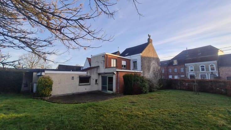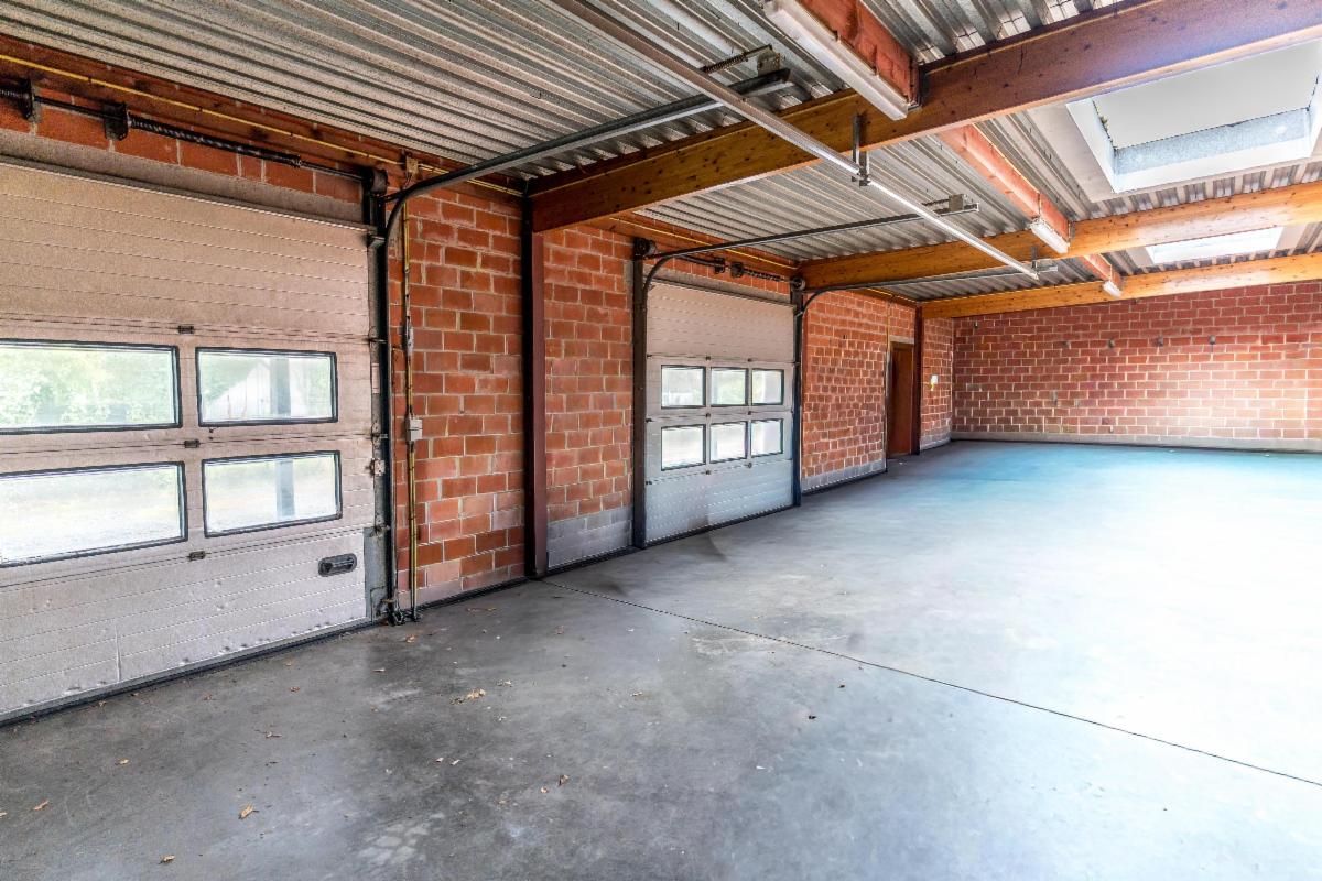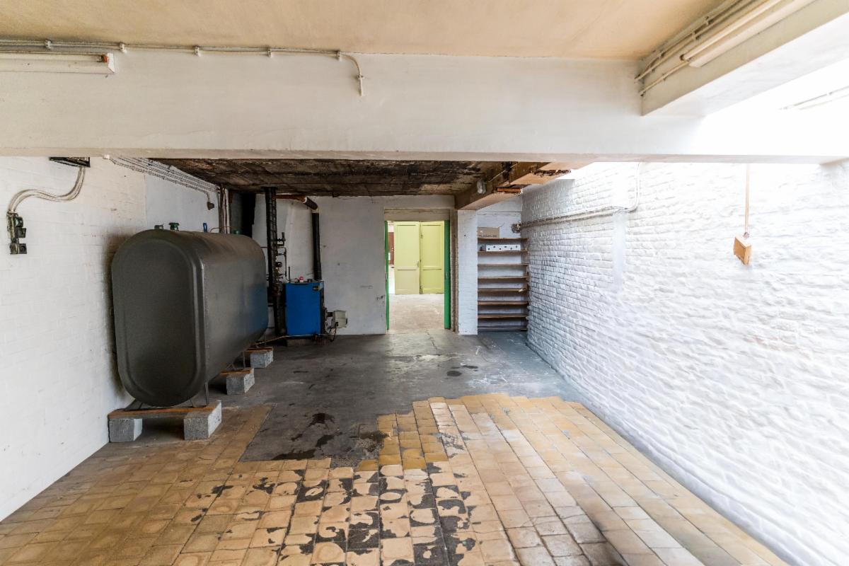 Le tout clôturé. Bâtiment à haut potentiel disposant d’un entrepôt (+/- 320 m2) accessible de la rue par un large passage latéral et de la maison par un passage couvert.