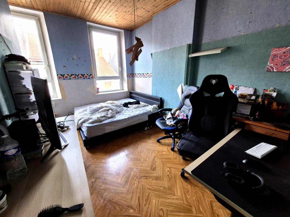 Ce bien se compose au rez: salle à manger, salon, cuisine semi-équipée, salle de douche; à l'étage: palier, 2 chambres; grenier aménagé en 2 chambres. Caves. Terrasse avec jardin. Raccordée à l'égout. Superficie : 1 are - Rc : 312 €. Poêles au gaz. Châssis DV en PVC et en alu.