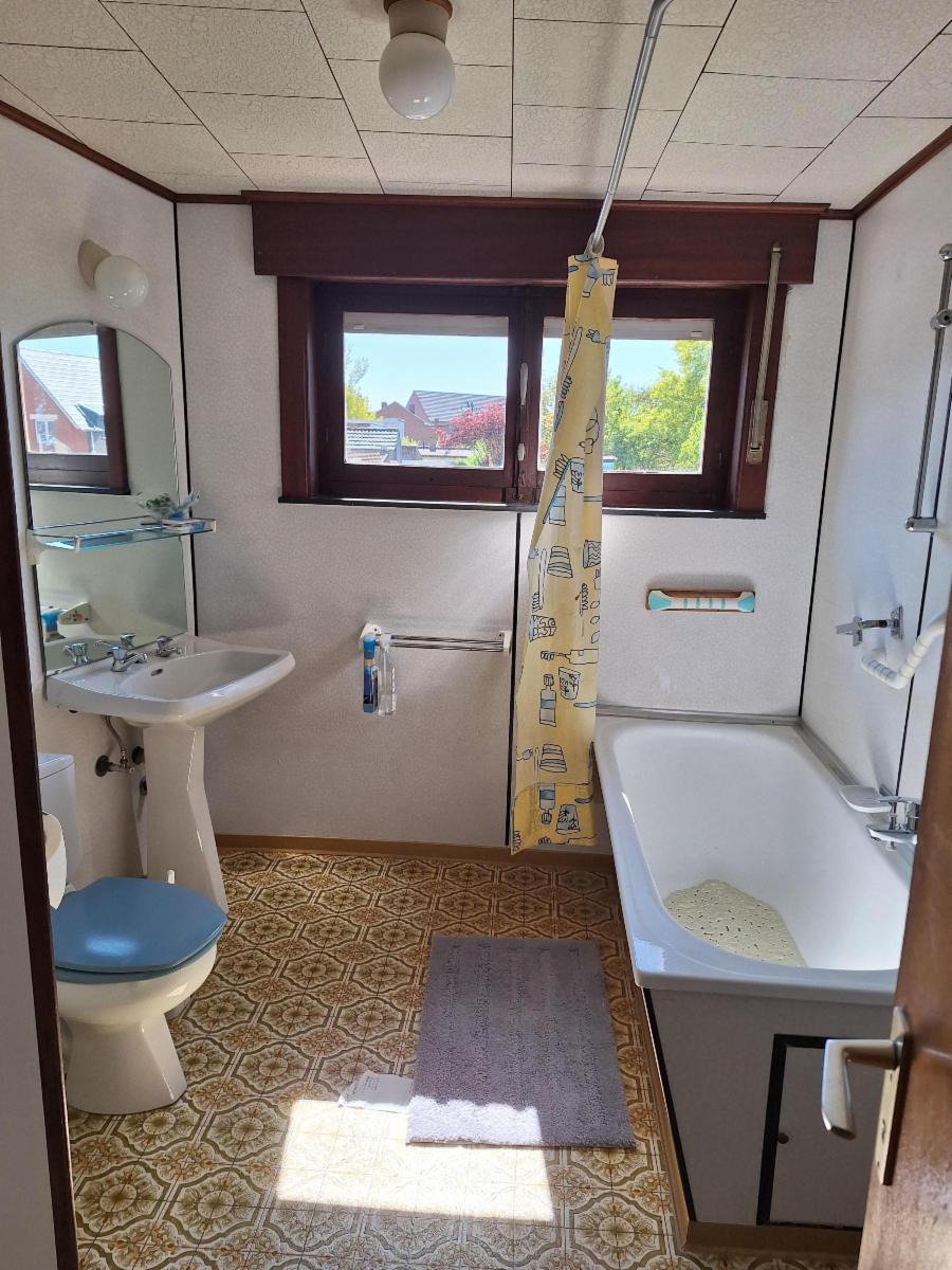 A l'étage : trois chambres, salle de bains (baignoire, lavabo, WC, chauffe eau)