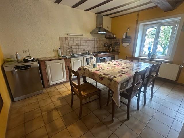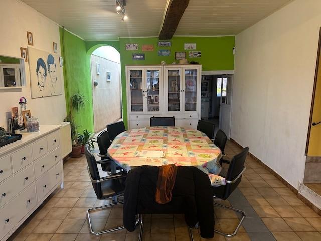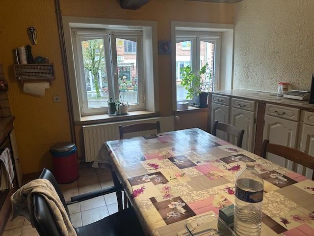 Maison d'habitation sise Grand Place 23 à 6590 Momignies : façade rénovée, nouveaux châssis dv comprenant rez : hall, sam avec bureau et feu ouvert - salon - cuisine couloir vers sdb (neuve) + wc