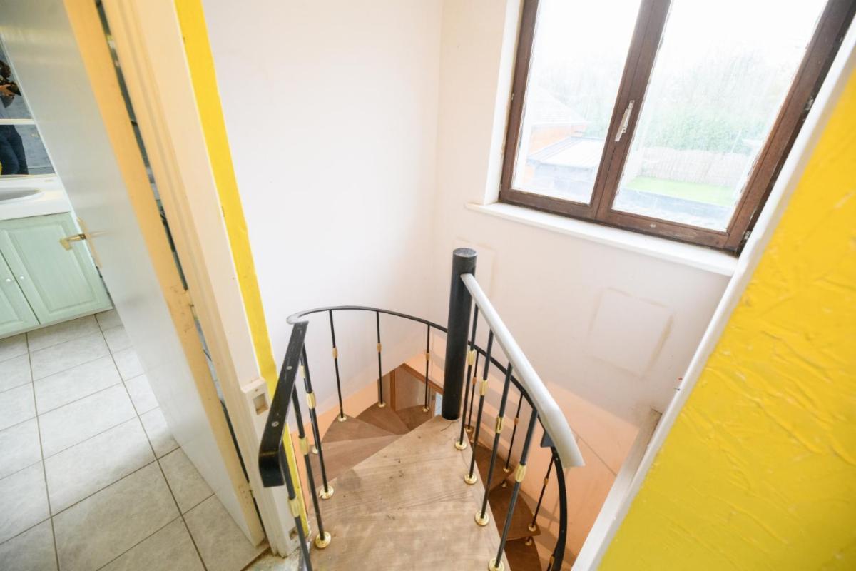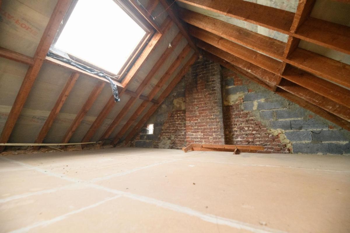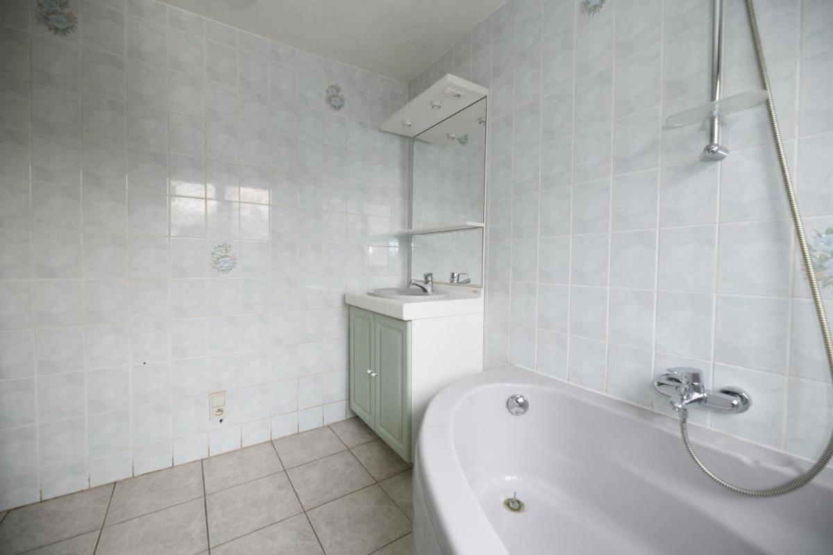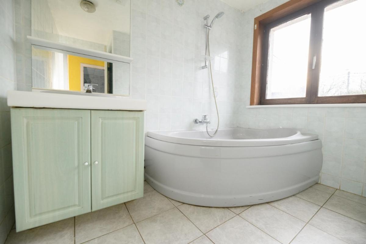 À l’étage 1 : deux chambres, une salle de bains carrelée (une baignoire d’angle et un lavabo), et un grenier aménageable.