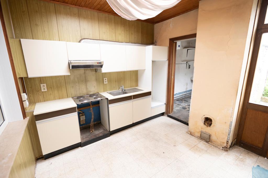 Comprenant : Au sous-sol : une cave. Au rez-de-chaussée : un salon, une salle à manger, une cuisine non-équipée et une salle de bains équipée avec douche et W.C. Etage : deux chambres et un grenier aménageable. Extérieur : un jardin et un garage.
