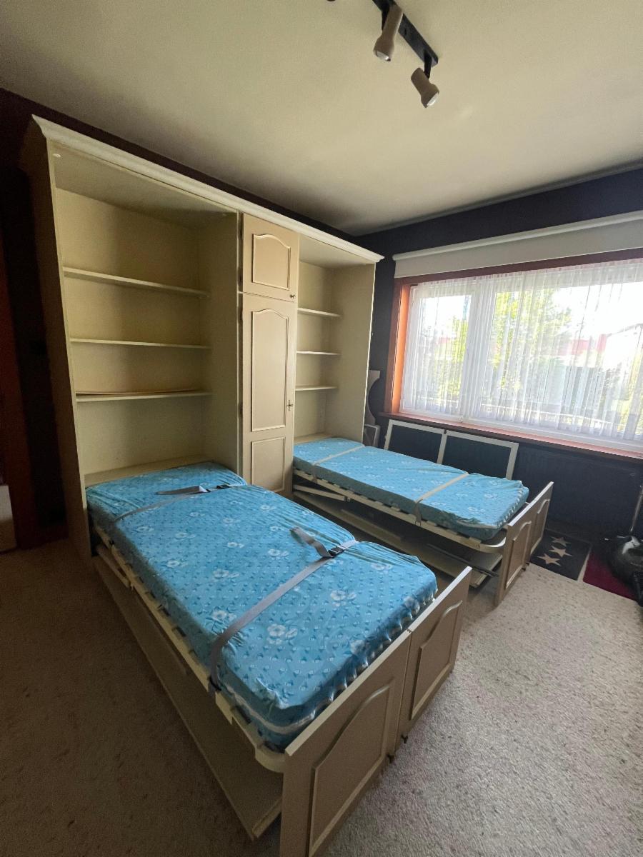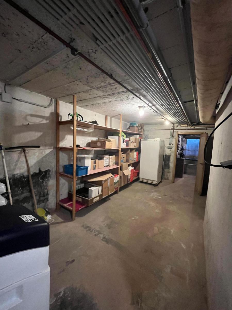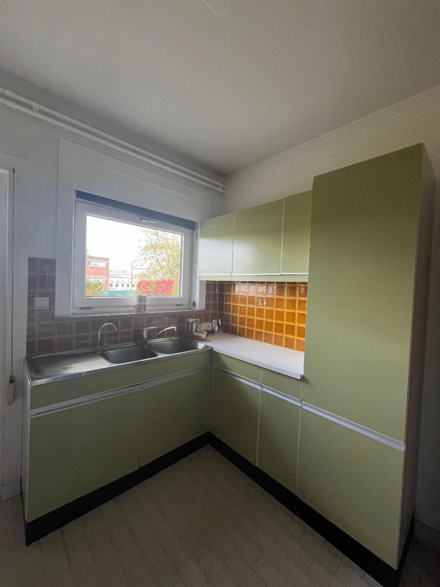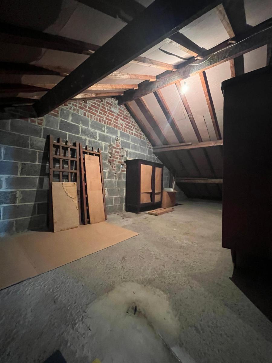 Le bien est composé au rez-de-chaussée d'un hall, d'un living spacieux, d'une cuisine (frigo, hotte, taque, four, évier), d'une salle de douche (meuble évier, WC, douche + arrivées machines), de 2 chambres et d'un bureau avec accès pour le grenier qui est en partie aménagé. Il y a également une cave.
