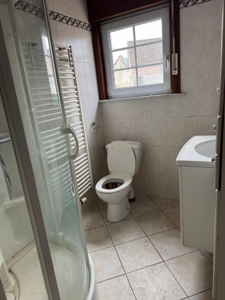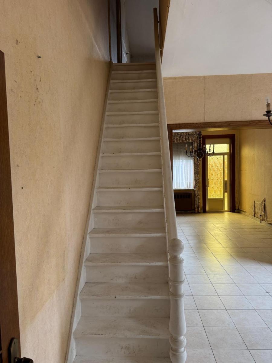 - au rez : salon - salle-à-manger, cuisine (évier, four), arrière cuisine, salle-de-bain (wc, évier, douche), local chaudière