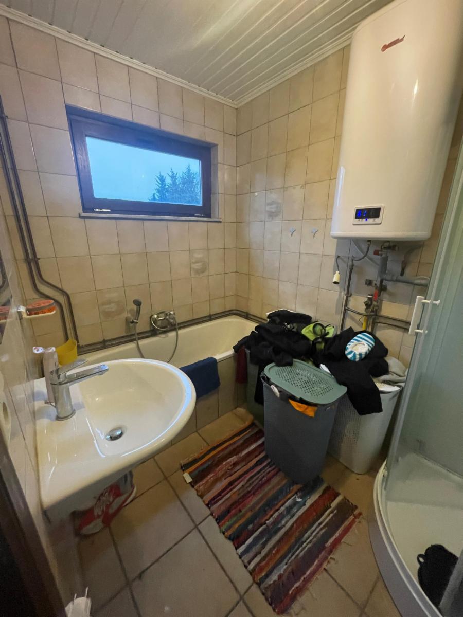 rez : salon, salle à manger, cuisine équipée, cour, SDB, WC;