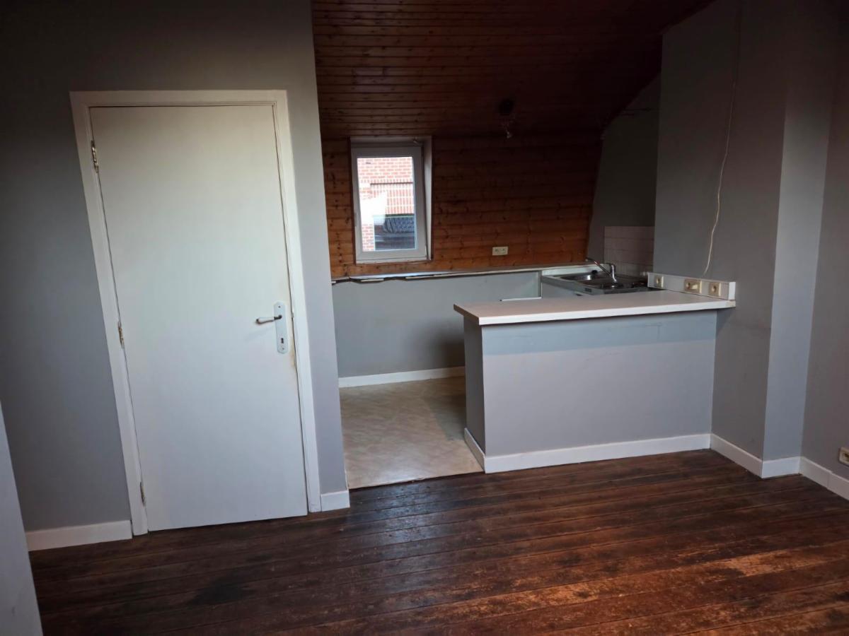 Au deuxième étage : une chambre avec coin cuisine et une salle de bains avec bain, lavabo et WC.