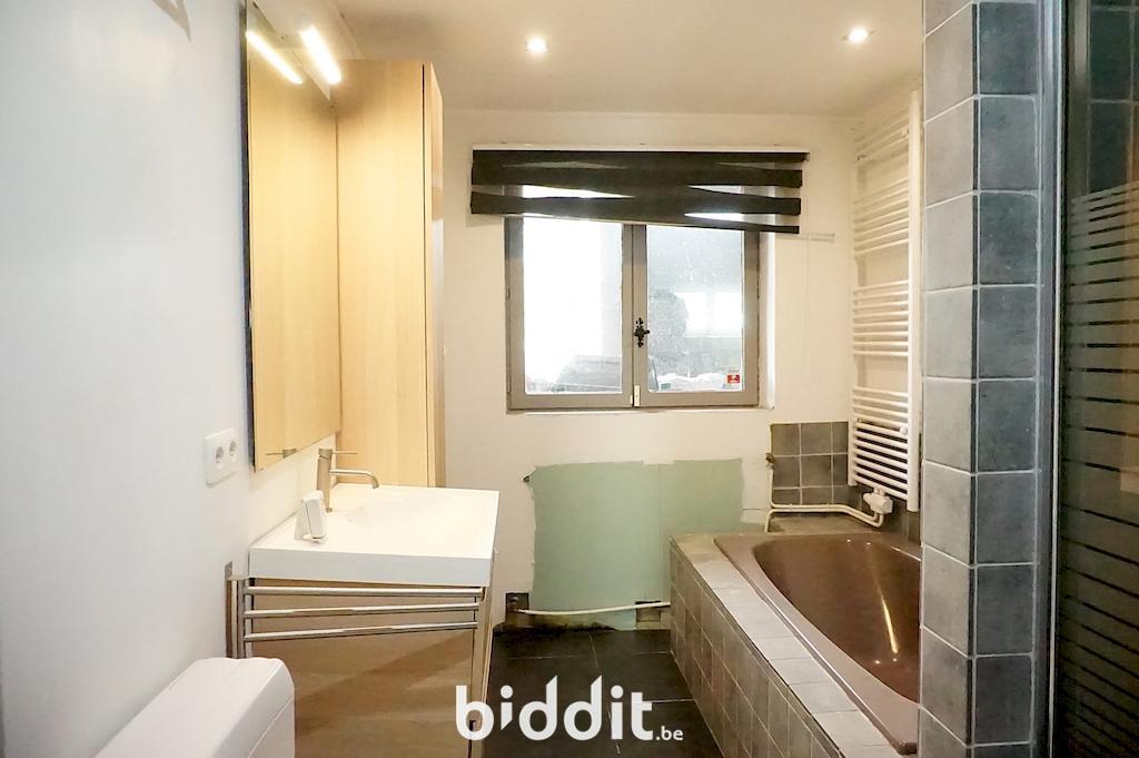 Au rez-de-chaussée, vous trouverez un vaste garage avec belle hauteur sous plafond, une buanderie, une salle de bain ainsi qu’une annexe pouvant être aménagée en troisième chambre ou bureau. Cette annexe présente toutefois une infraction urbanistique partielle et devra faire l’objet d’une démolition partielle aux frais des acquéreurs.