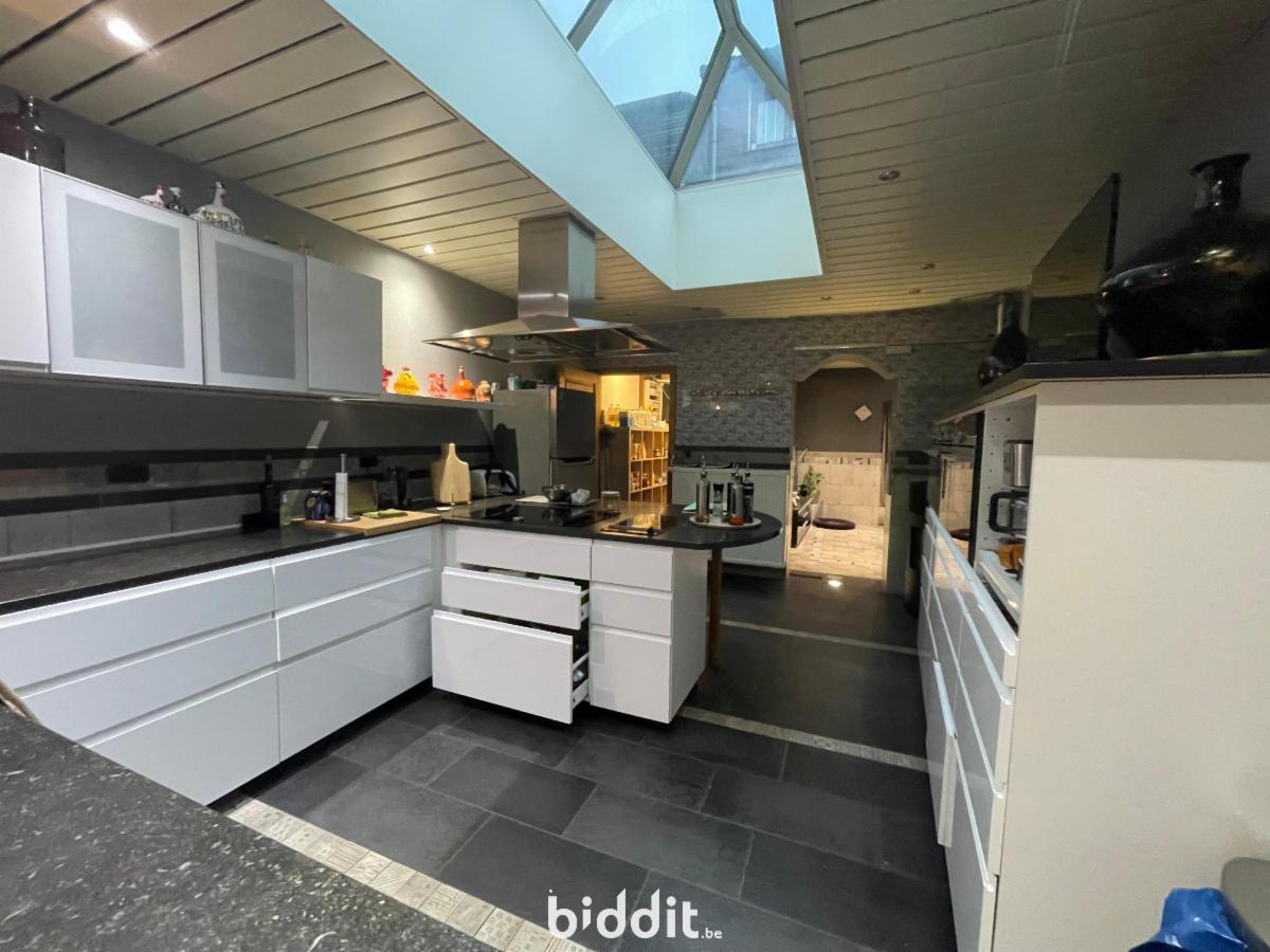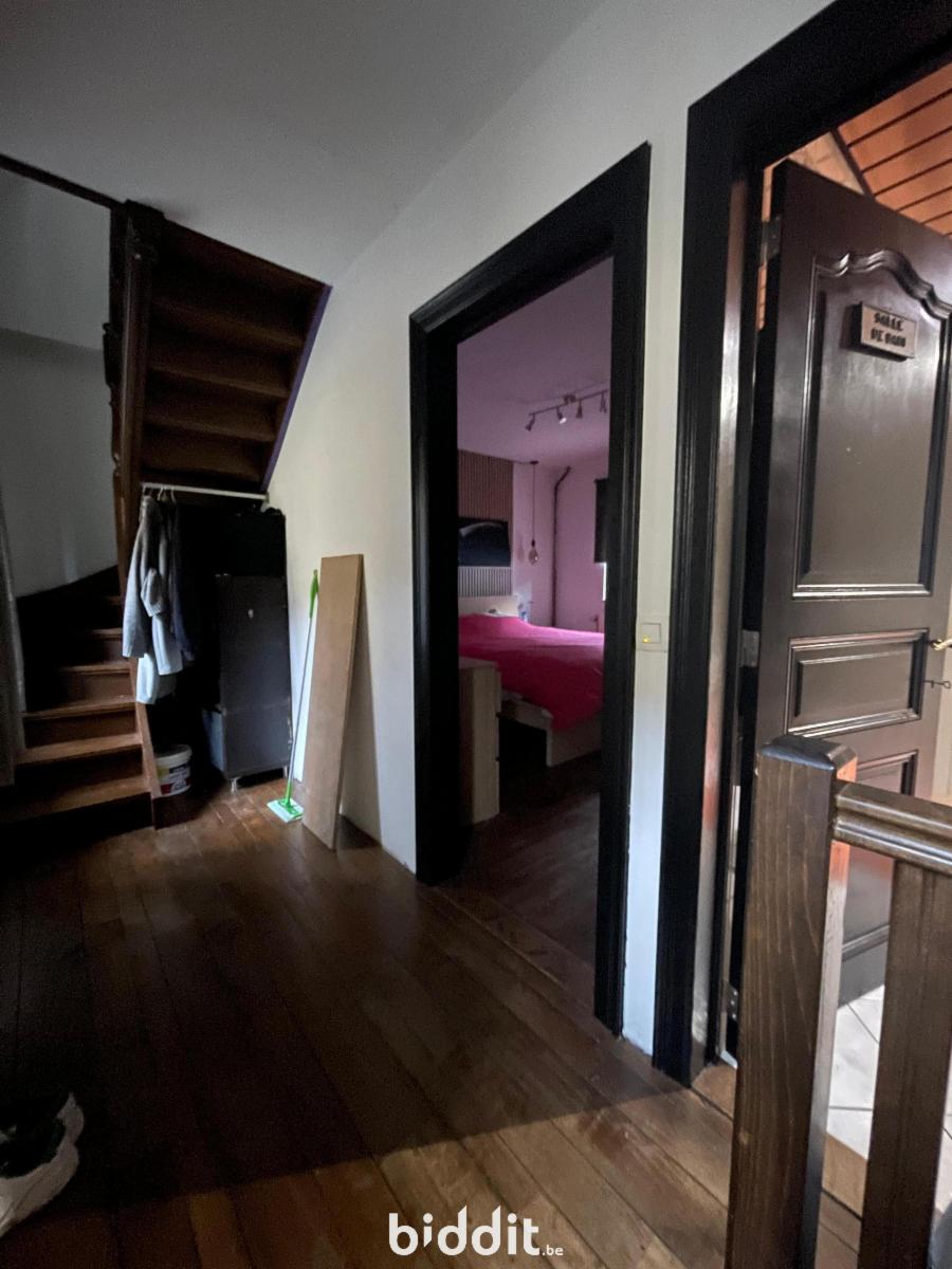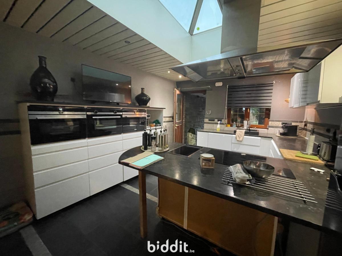 maison située au calme composée AU REZ: d'un grand hall d'entrée carrelé avec poêle, une buanderie, un salon, une cuisine équipée, une réserve, une pièce arrière "véranda" servant de salle à manger donnant accès à la terrasse (+-30m²) et au local chaufferie AU 1er: hall de nuit, salle de bains carrelée avec double vasque et baignoire, 1chambre, au 2 EME: hall de nuit et 2 chambres ; double vitrage bois et PVC; chauffage central mazout; PEB F; PV élec non conforme; la vente ne concerne que la parcelle 1222RP000 --> voir cahier des charges