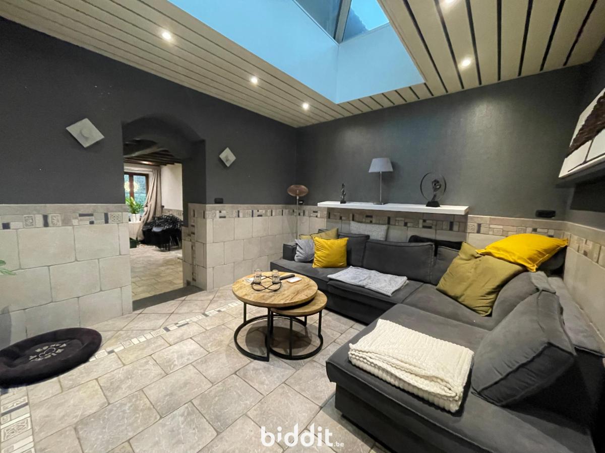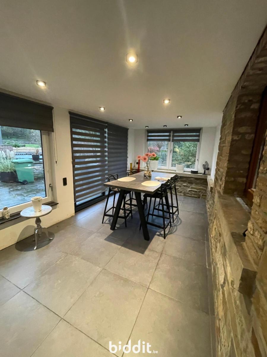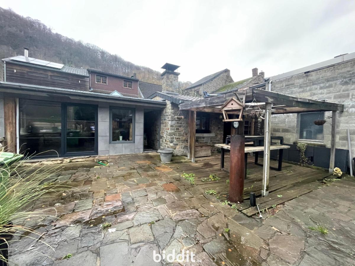 maison située au calme composée AU REZ: d'un grand hall d'entrée carrelé avec poêle, une buanderie, un salon, une cuisine équipée, une réserve, une pièce arrière "véranda" servant de salle à manger donnant accès à la terrasse (+-30m²) et au local chaufferie AU 1er: hall de nuit, salle de bains carrelée avec double vasque et baignoire, 1chambre, au 2 EME: hall de nuit et 2 chambres ; double vitrage bois et PVC; chauffage central mazout; PEB F; PV élec non conforme; la vente ne concerne que la parcelle 1222RP000 --> voir cahier des charges