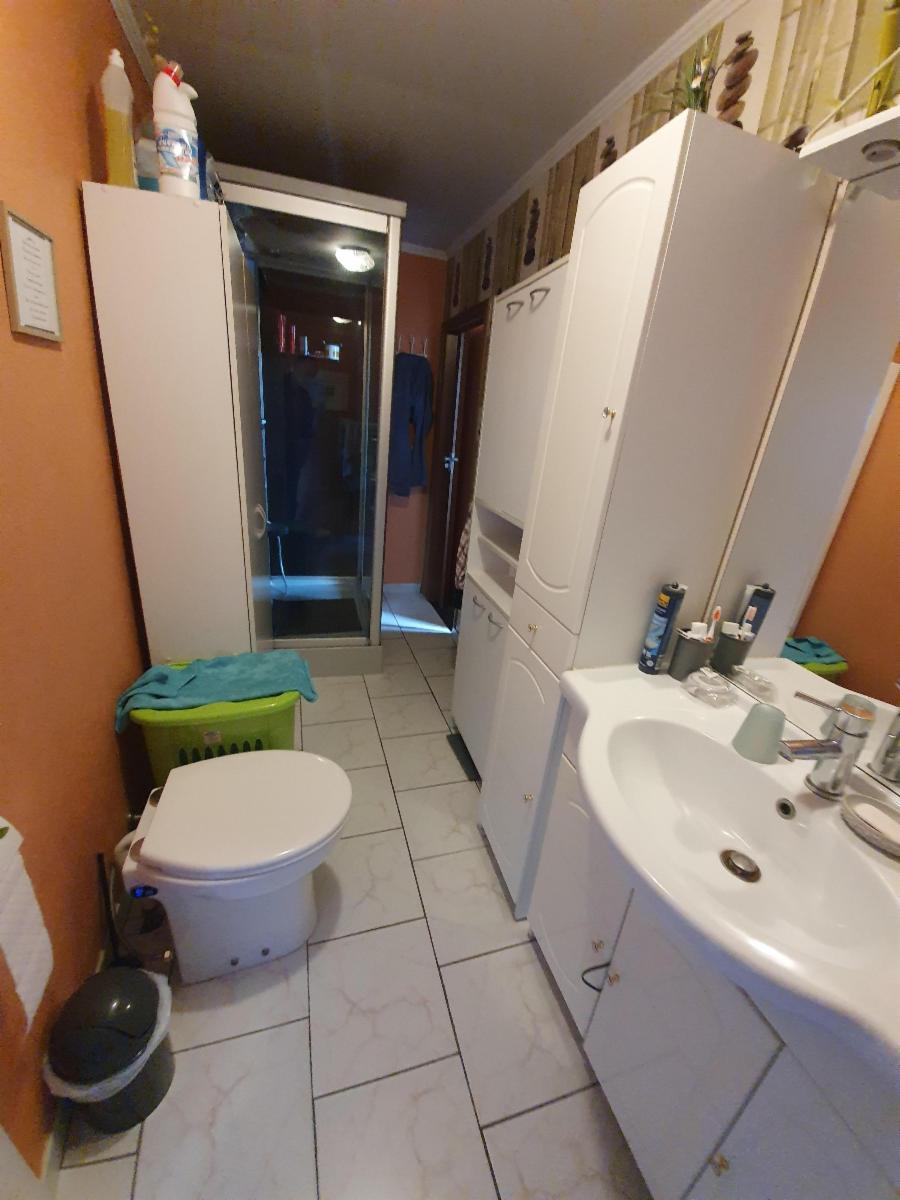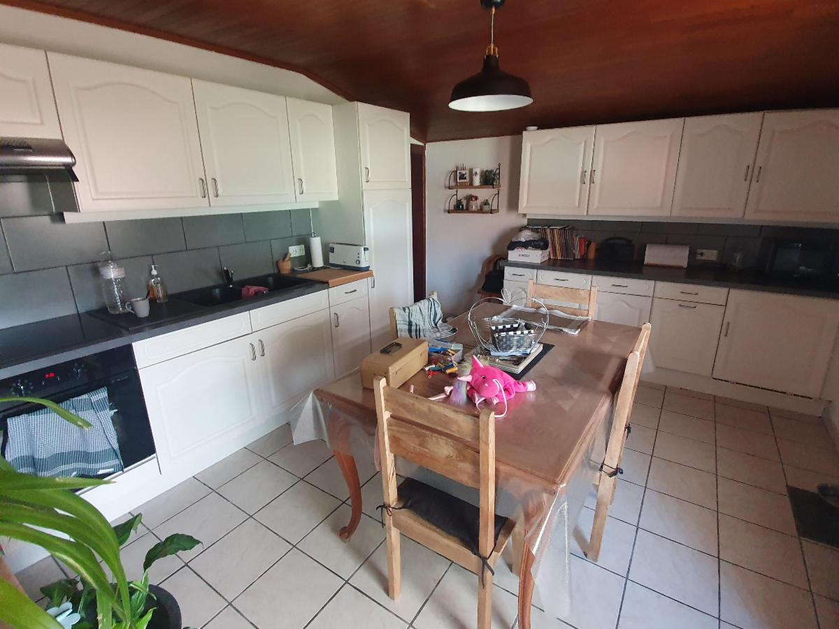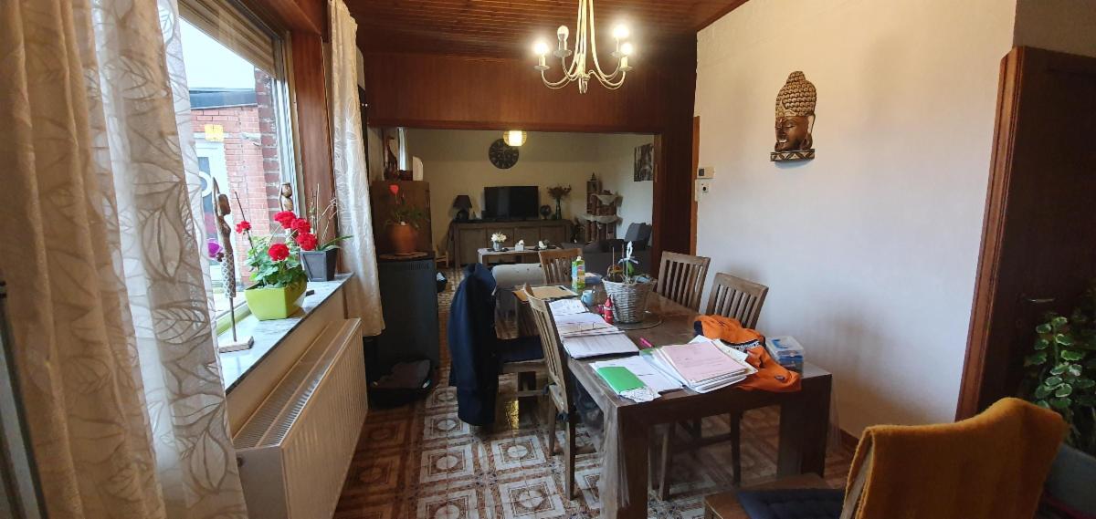 Rez : hall d'entrée, salon/Living (+/- 40 m²), cuisine équipée (+/- 16 m²); 2 chambres (12 et 16 m²), salle de douche avec wc (+/- 6 m²), pergola, terrasse, annexe (+/- 10 m²), garage (+/- 16 m²), petit passage latéral couvert, volets, doubles vitrages (PVC et ALU), égout + fosse, Chauffage Gaz de Ville (chaudière Vaillant ventouse 2022), jardin