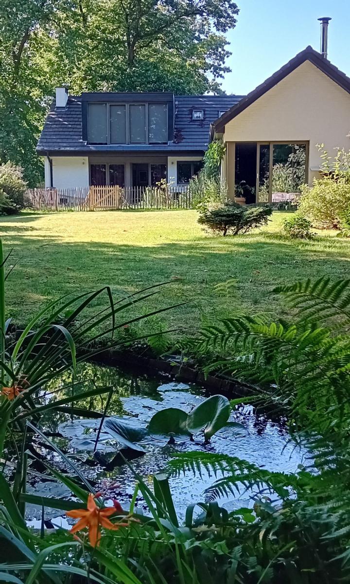 La maison s'ouvre sur une terrasse bien exposée et un vaste jardin fleuri et arboré de châtaigniers et chênes centenaires, avec une pièce d'eau.