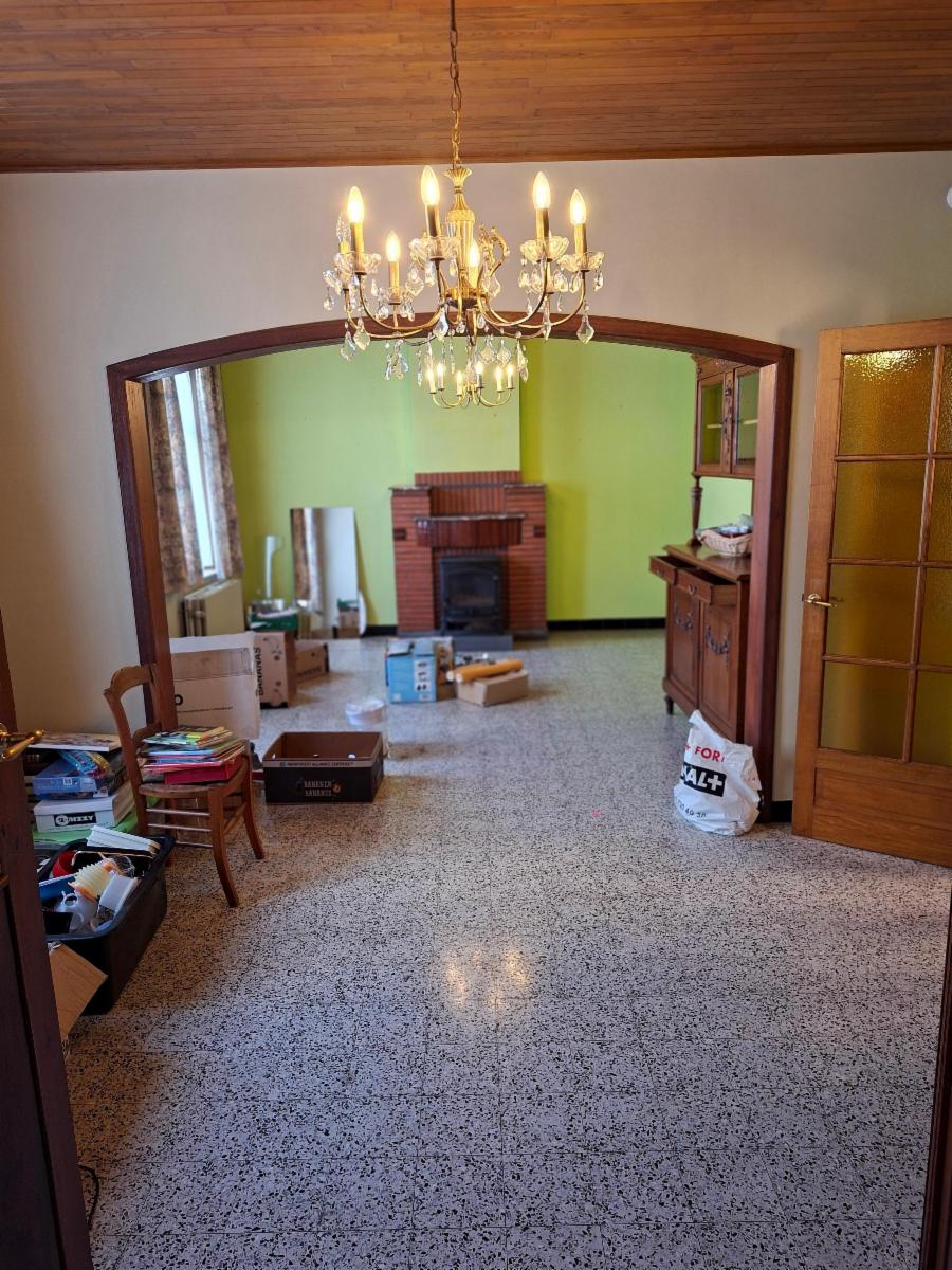 Au rez-de-chaussée, un hall d'entrée avec coin vestiaire, un salon et une salle à manger, une pièce intermédiaire donnant accès à la cave et au premier étage, une cuisine, une salle de bain (baignoire et évier) ainsi qu'un WC séparé, attenant à la salle de bain. Le premier étage comporte 4 belles chambres ainsi qu'une pièce de rangement. Cette dernière donne accès via une trappe et un escalier, au grenier du deuxième étage (beau volume permettant d'y aménager une ou plusieurs chambre(s) mansardée(s)).