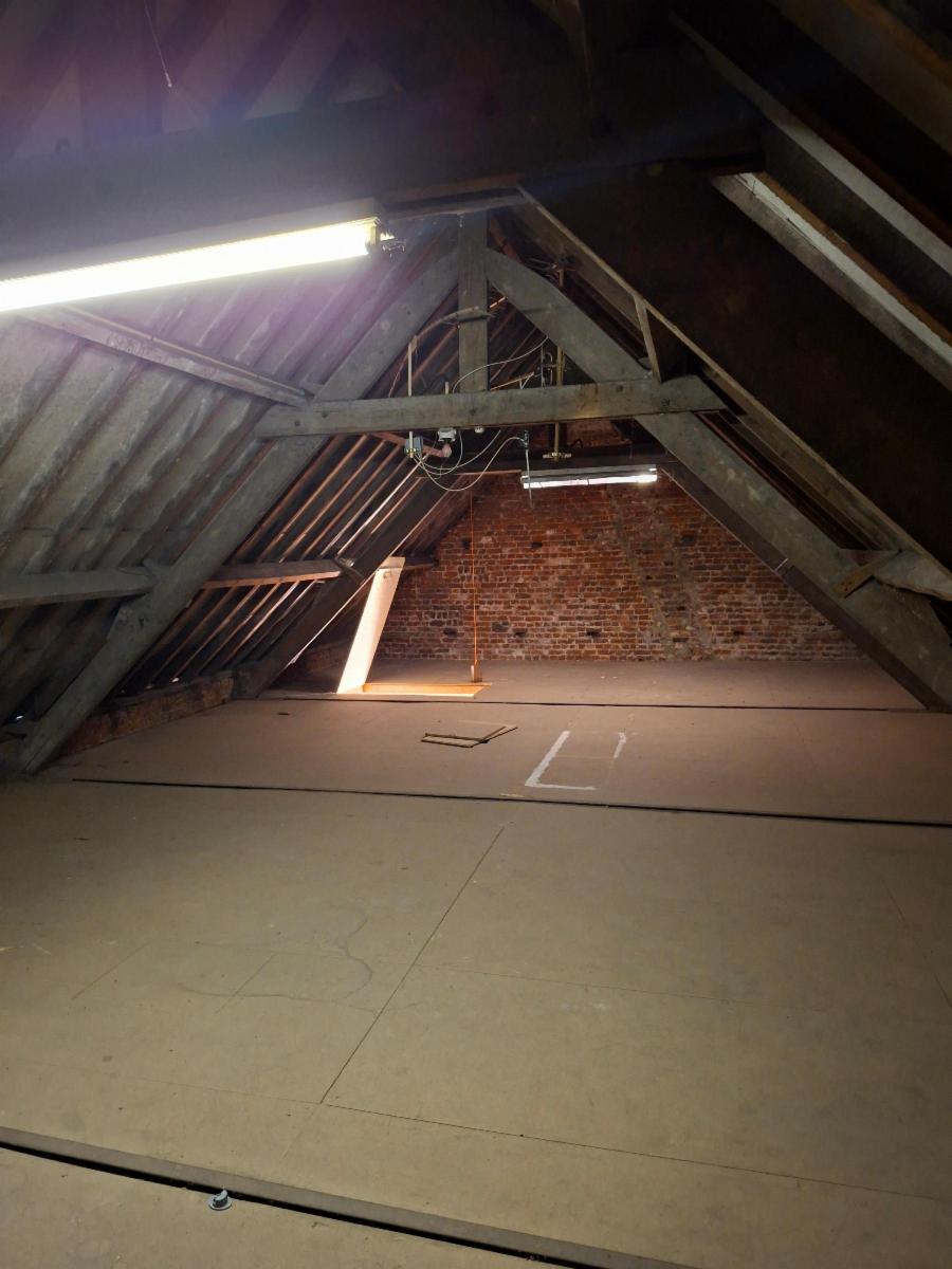-Toiture non isolée en tuiles (présence d'Eternit sur le toit de l'annexe).