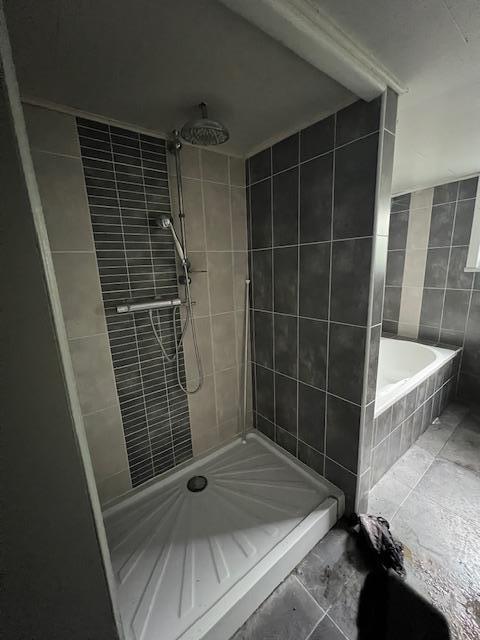 - Au rez-de-chaussée : Entrée sur grande pièce à vivre (salon-sàm), grand espace cuisine, espace buanderie avec raccordements, WC séparé, salle de bain (douche, baignoire, WC, double vasque).