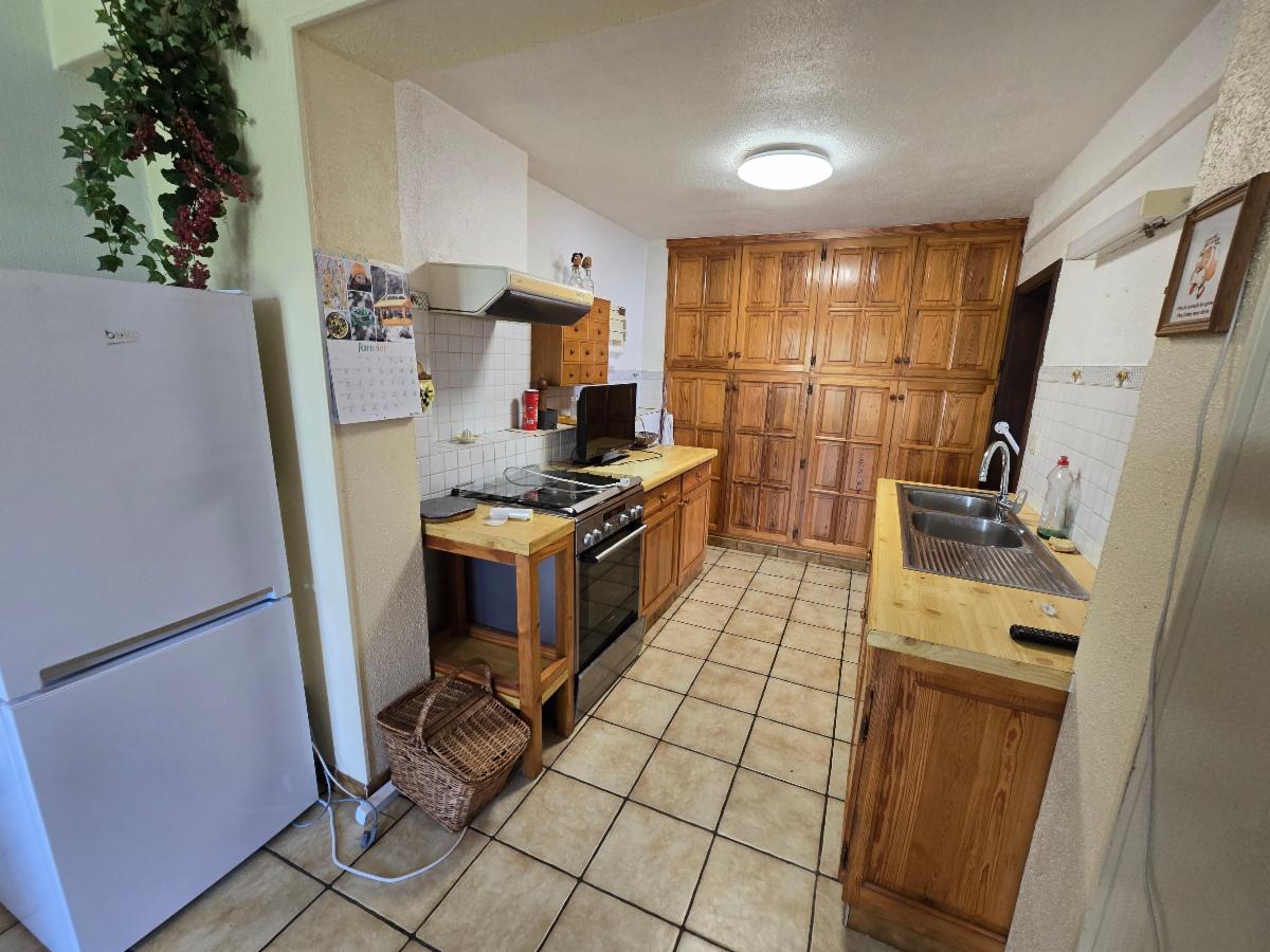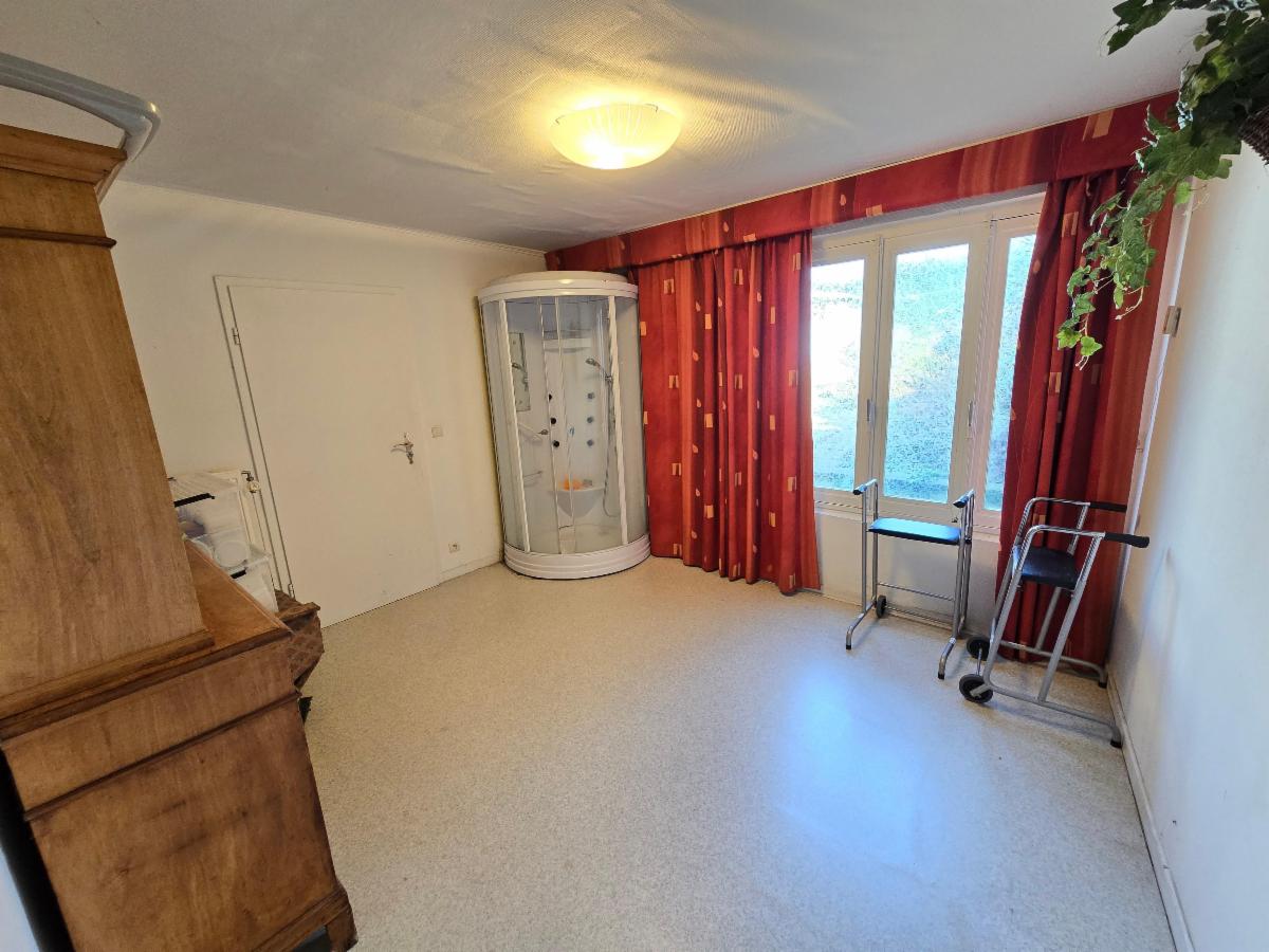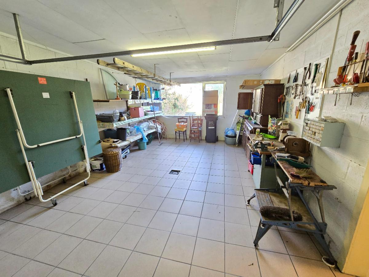 Ce bien à rénover dispose de deux à trois chambres, d'une salle de bain, d'un garage, d'une grande cuisine, d'un living spacieux, d'une buanderie et de caves.