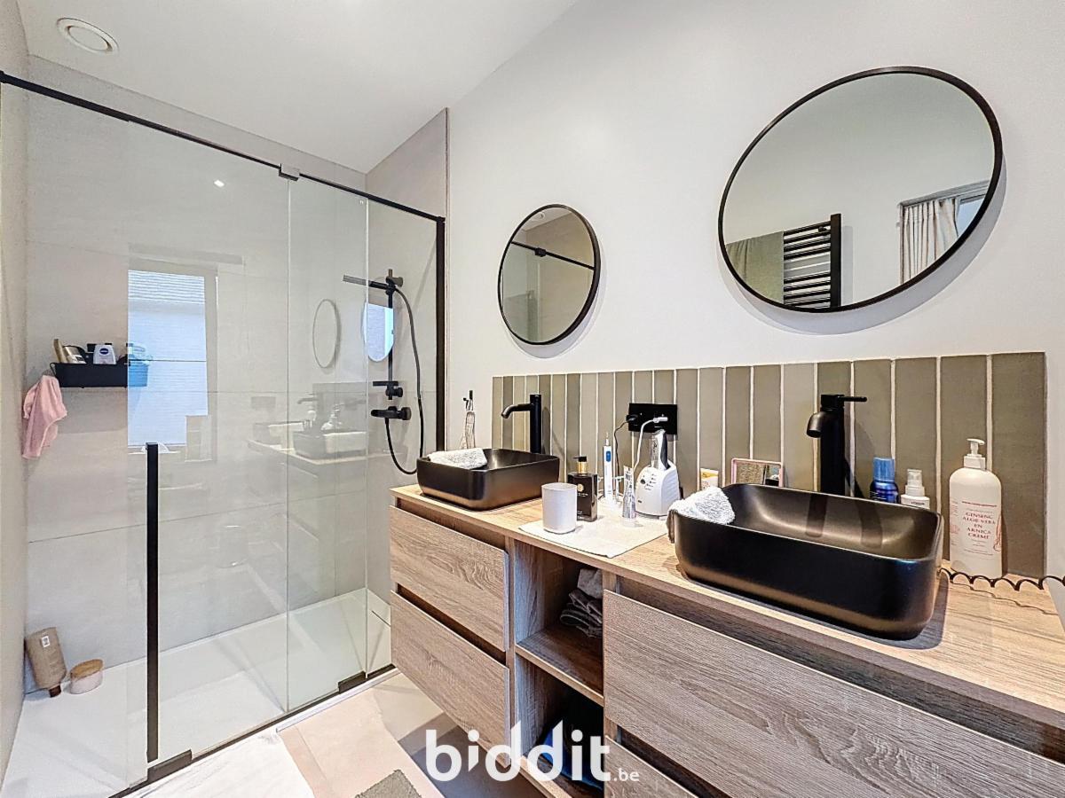 1e verdieping: Nachthal met toegang tot een zeer ruime slaapkamer met ensuite badkamer (bad, dubbele lavabo en toilet). Daarnaast is er een polyvalente ruimte, ideaal als bureau, dressing, hobbyruimte of extra slaapkamer.