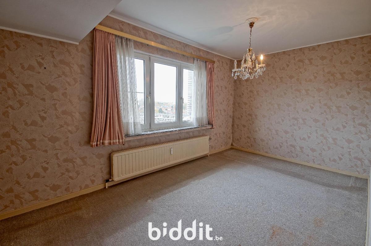 Gelegen op de 12e verd., dit lichtrijk appartement van 96 m² biedt een prachtig uitzicht en heeft een mooi terras zuidwest gericht. Te moderniseren maar het vormt een uitstekende basis voor het creëren van een comfortabele en moderne woonruimte. Het bestaat uit 3 slaapkamers (11-10-14 m²), een lichtrijke en ruime woonkamer met vrij uitzicht, een charmante in vintage stijl ingerichte keuken met toegang tot het terras van 11 m² zuidwest gericht - perfect om van de zon te genieten, een badkamer, een aparte wc en een kelder nr 45 op het glvl. PVC-ramen met dubbele beglazing. Gelegen nabij winkels, openbaar vervoer, scholen en voorzieningen. De omgeving is groen en rustig, direct tegenover het park. Een unieke kans voor een starter of een rendable investering. N.g.k.i. 1.160€. Vrij van gebruik. Woongebied met residentieel karakter. EPC G/807. Contr. elektr. niet conform. Bezoeken na afspraak met Fabienne - 0485/00.52.42.