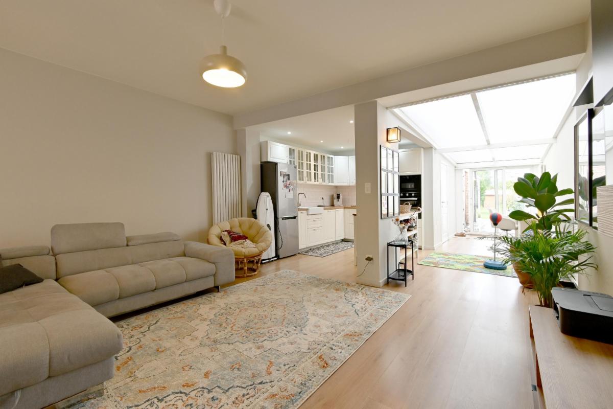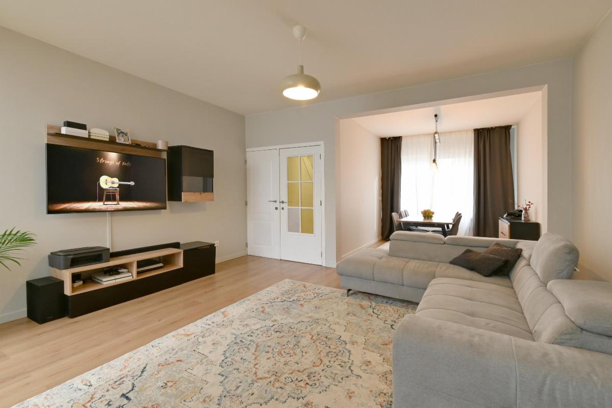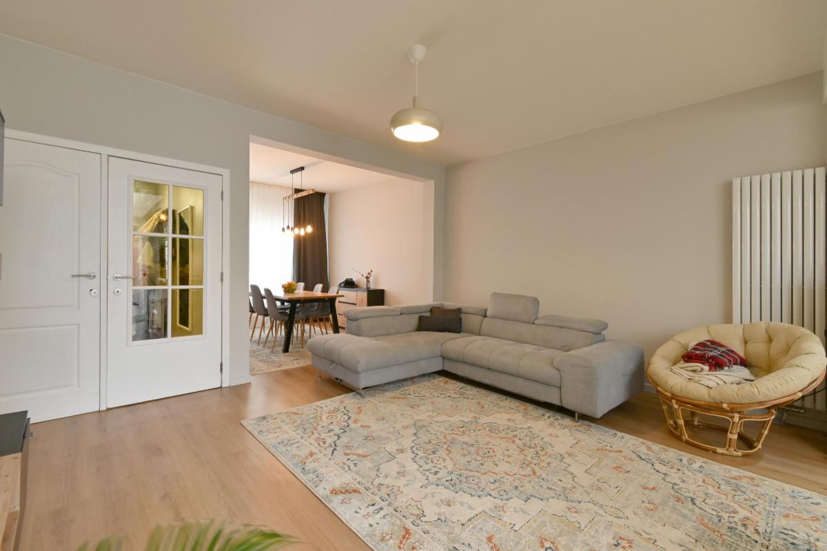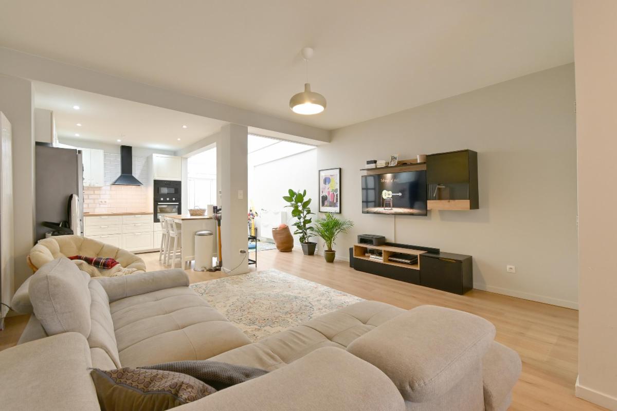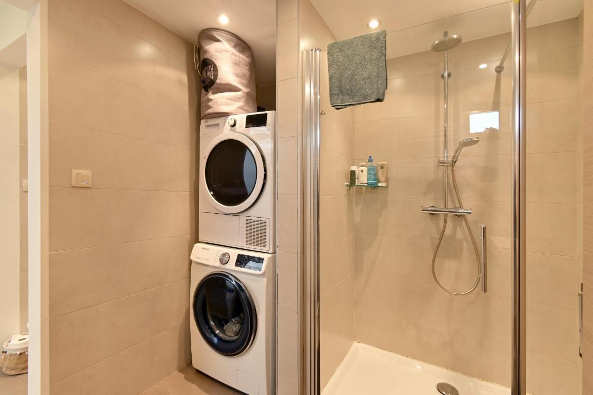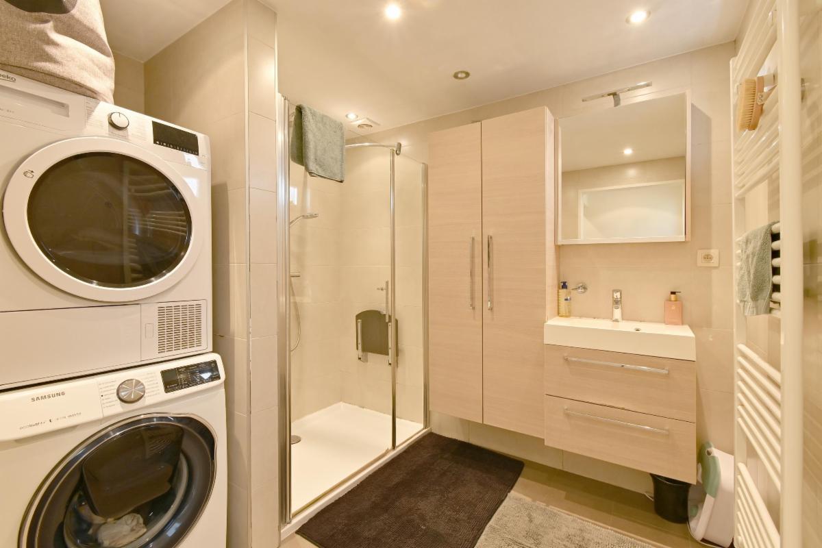 Gelijkvloers: inkomhal, woonkamer, ingerichte keuken (inductie kookplaat, oven, microgolf, koelkast, vaatwas), moderne badkamer (toilet, douche, lavabo, aansluiting wasmachine) en bergplaats